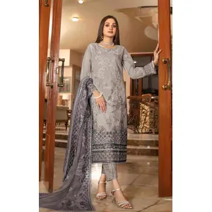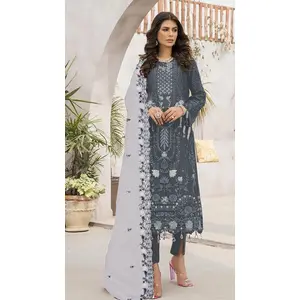 Grey Embroidered Faux Georgette Semi...