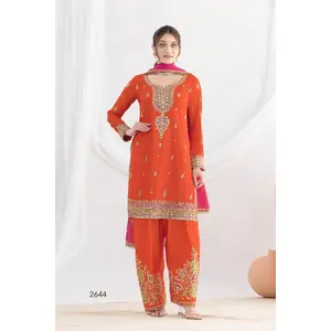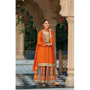 Orange Chinon Readymade Suit with...