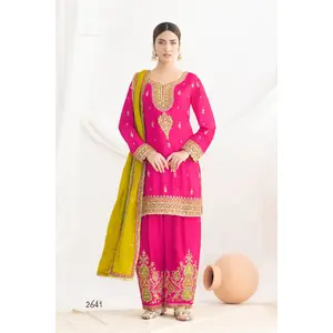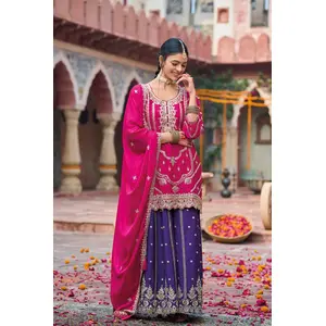 Rani Pink Premium Embroidered Chinon...