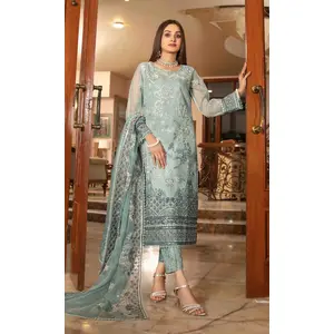 Light sky Embroidered Organza Semi...