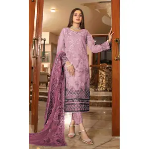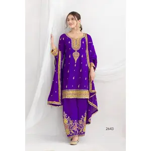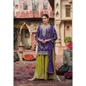 Purple Premium Embroidered Chinon...