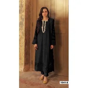 Black Chinon Readymade Suit with...