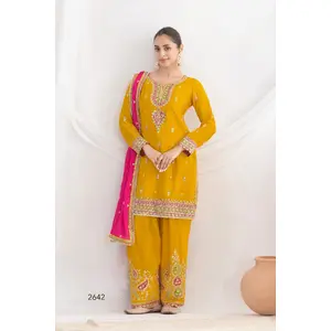 Mustard Chinon Readymade Suit with...