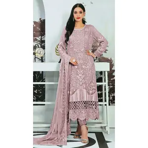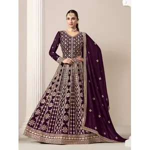 Purple Embroidered Faux Georgette...