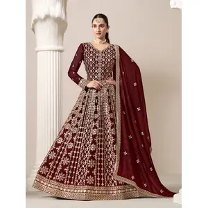 Maroon Premium Embroidered Georgette...