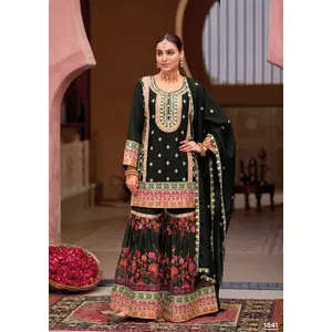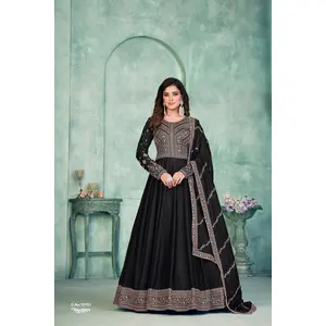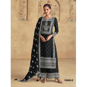 Black Chinon Embroidered Readymade...
