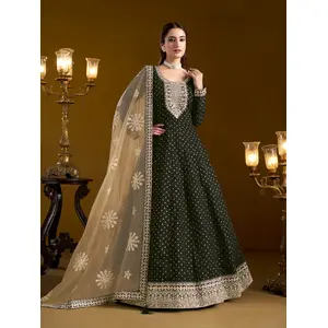 Green Embroidered Art Silk Semi...
