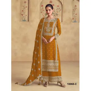 Mustard Premium Embroidered Georgette...