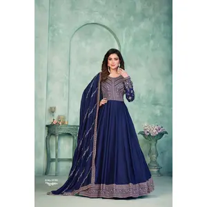 Navy Blue Embroidered Art Silk Semi...