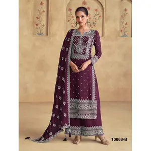 Wine Premium Embroidered Georgette...