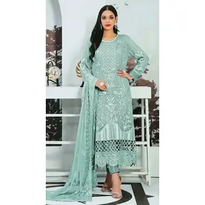 Sky_blue Embroidered Faux Georgette...