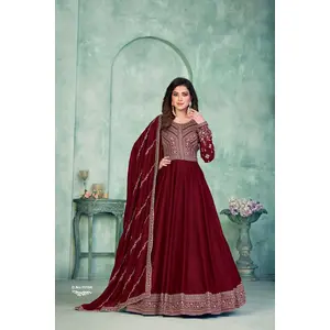 Maroon Embroidered Faux Georgette...