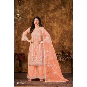 Peach Embroidered Faux Georgette Semi...