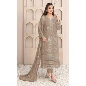 Chiku Embroidered Faux Georgette Semi...