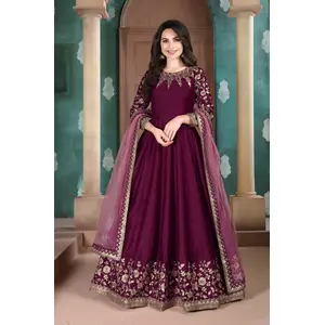 Purple Embroidered Adda Silk Semi...