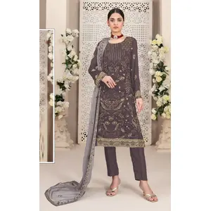 Grey Embroidered Faux Georgette Semi...