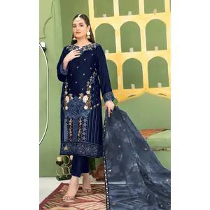Navy Blue Velvet Semi Stitched Suit...