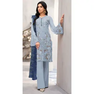 Sky blue Embroidered Faux Georgette...