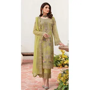Light Mehendi Embroidered Faux...