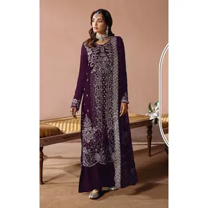 Purple Velvet Semi Stitched Suit with...