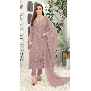 Grey Embroidered Faux Georgette Semi...