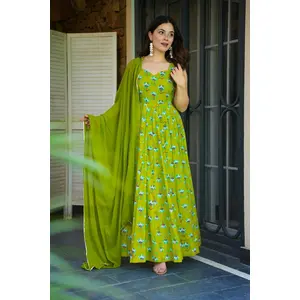 Parrot Green Color Beautiful Printed...