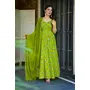 Parrot Green Color Beautiful Printed Partywear Gown For Trendy Girls