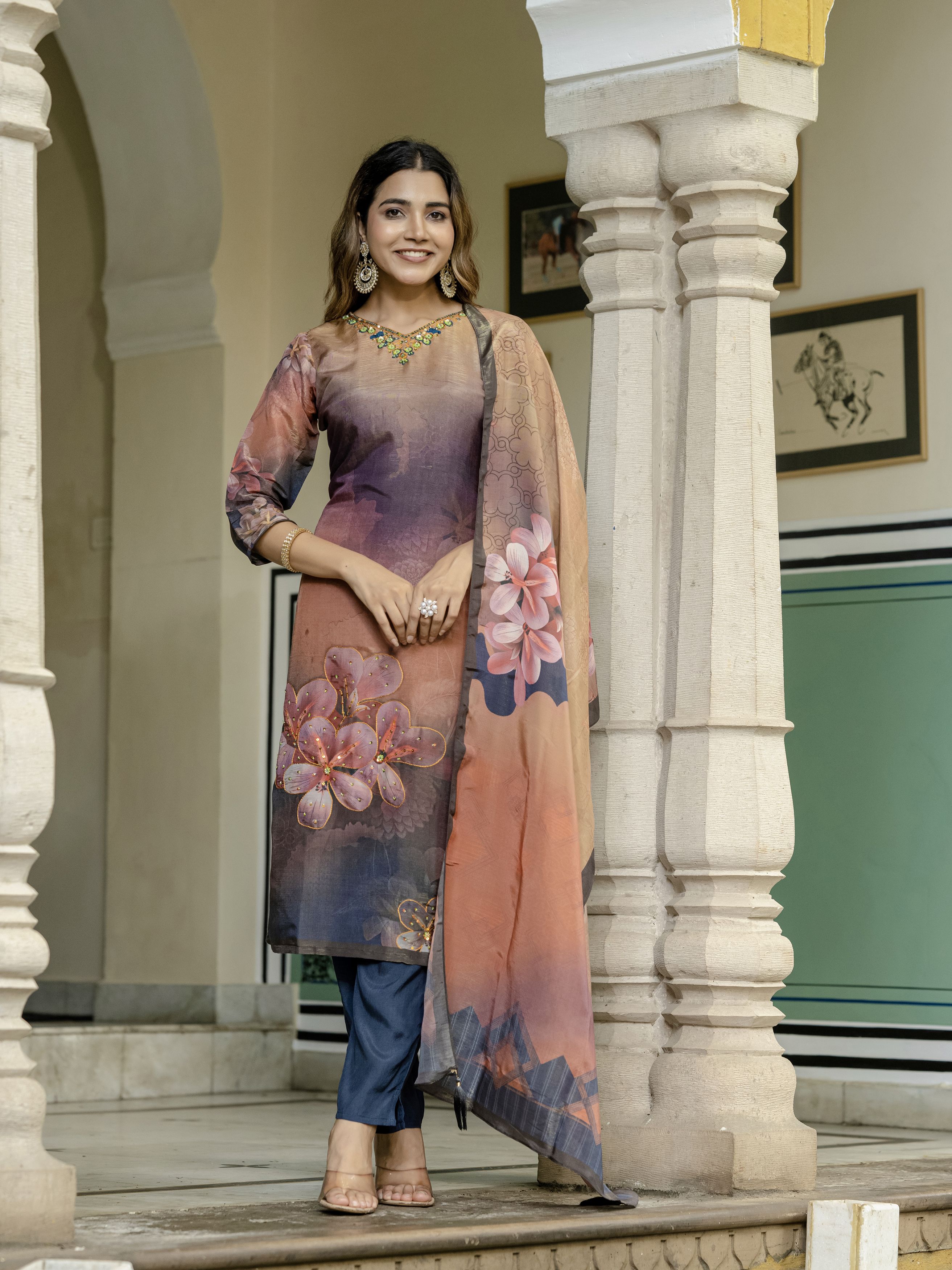Attractive These Designer Readymade Suit in Fine Colored Pair With Bottom And Dupatta.These Top And Dupatta Are Fabricated On Gucci Silk Pair With Viscose Santoon Bottom.Its Beautified With Designer Digital Printed With Hand Work.
