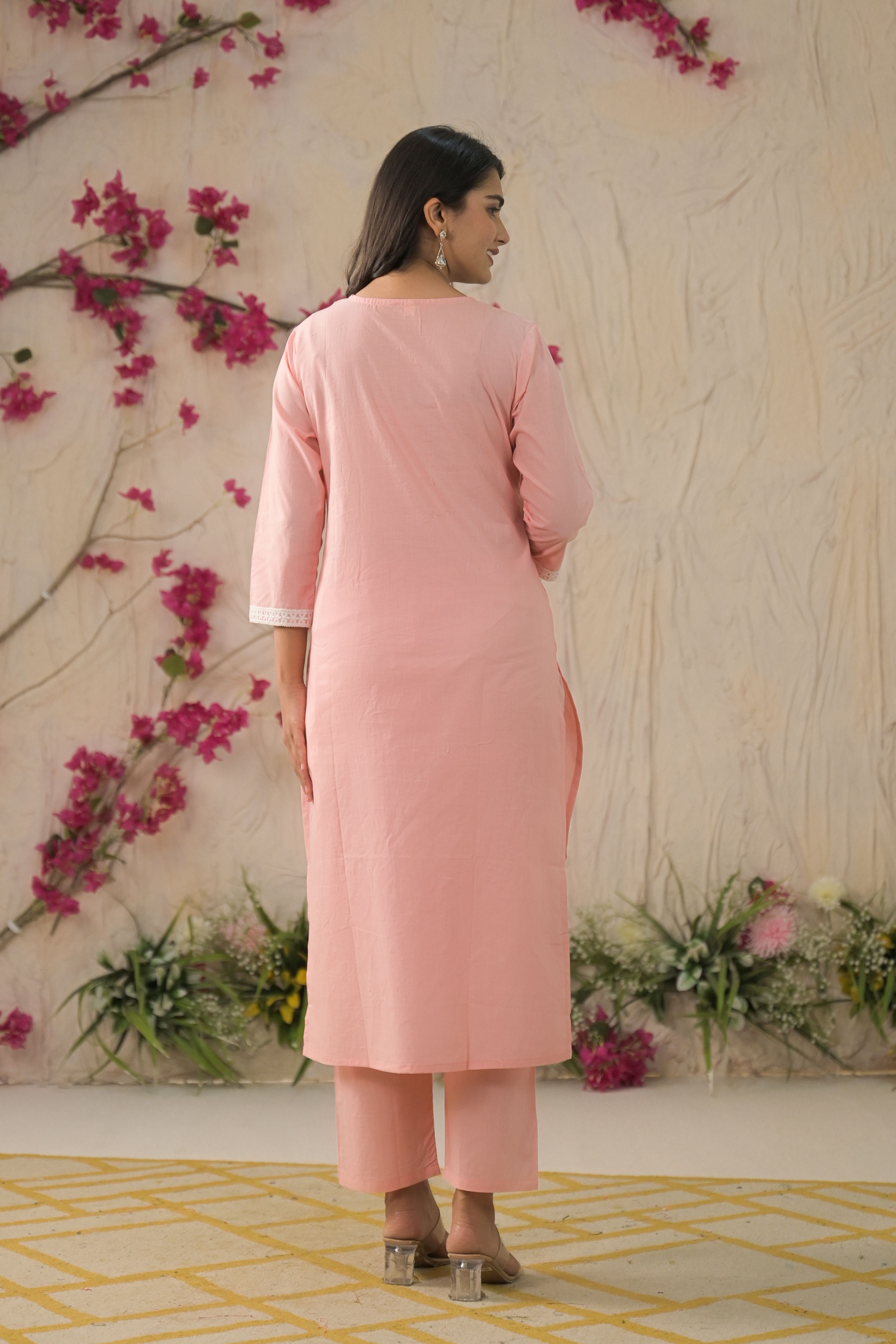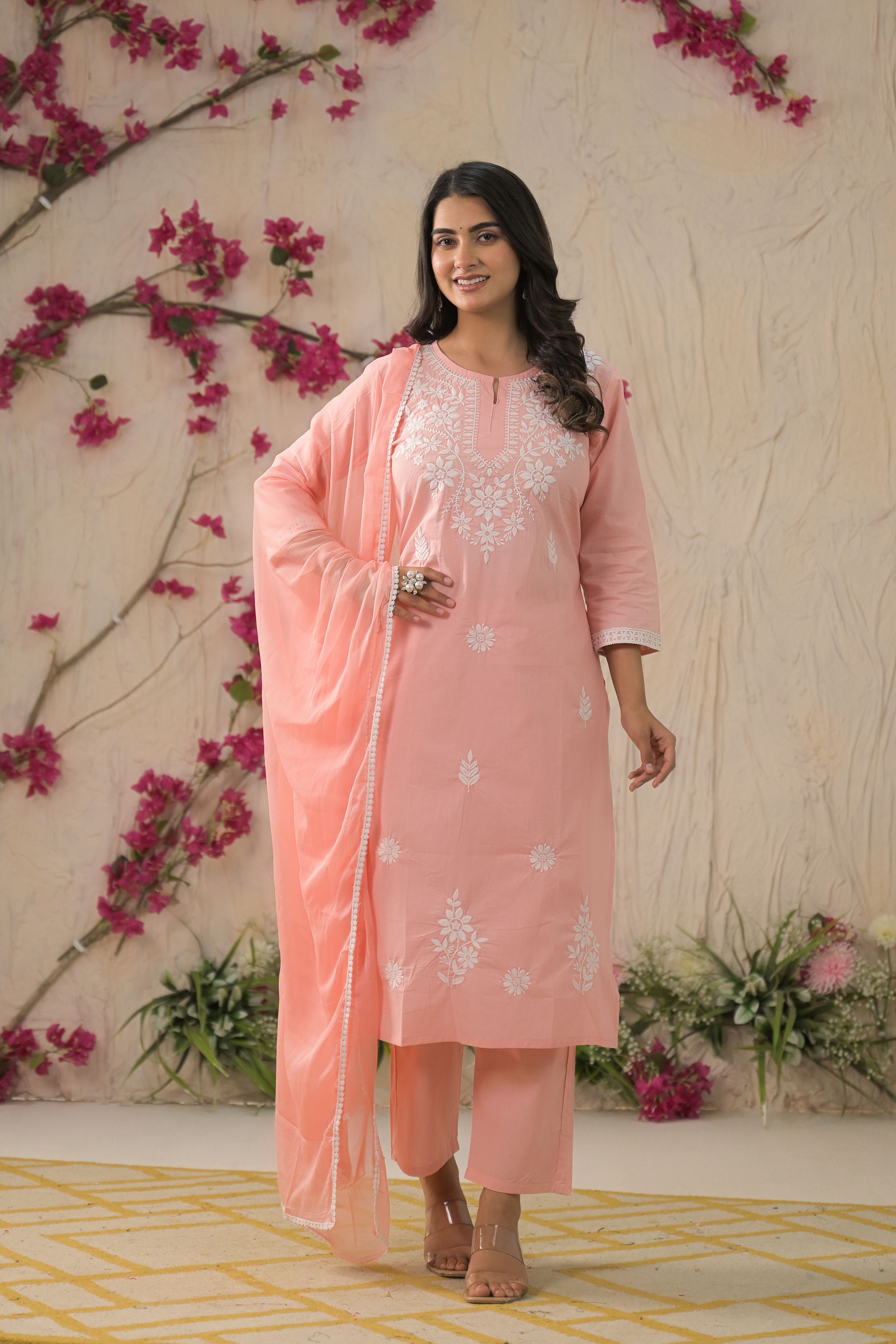 Peach Color Cotton Fabric Beautiful Fancy And Ethnic Kurta Set With Dupatta