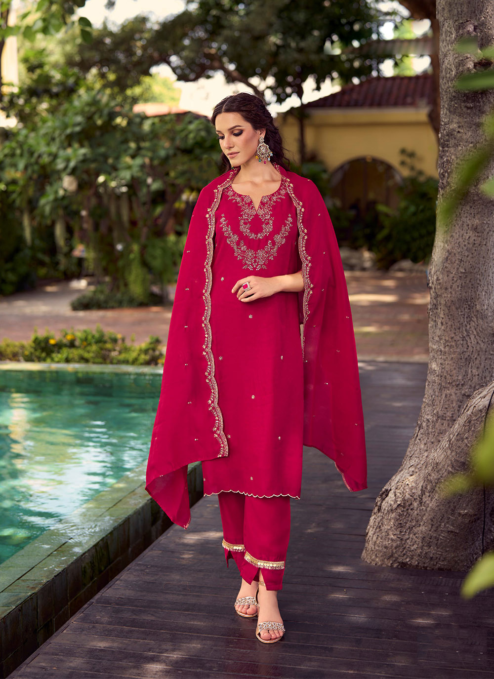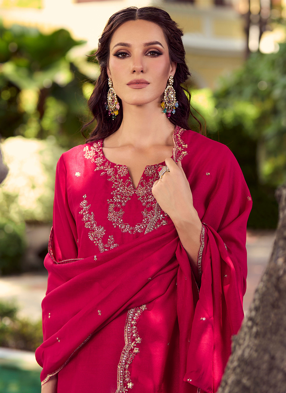 Pink Color Beautiful Ceremonial Shimmer Silk Fabric Embroidered Girls Suit