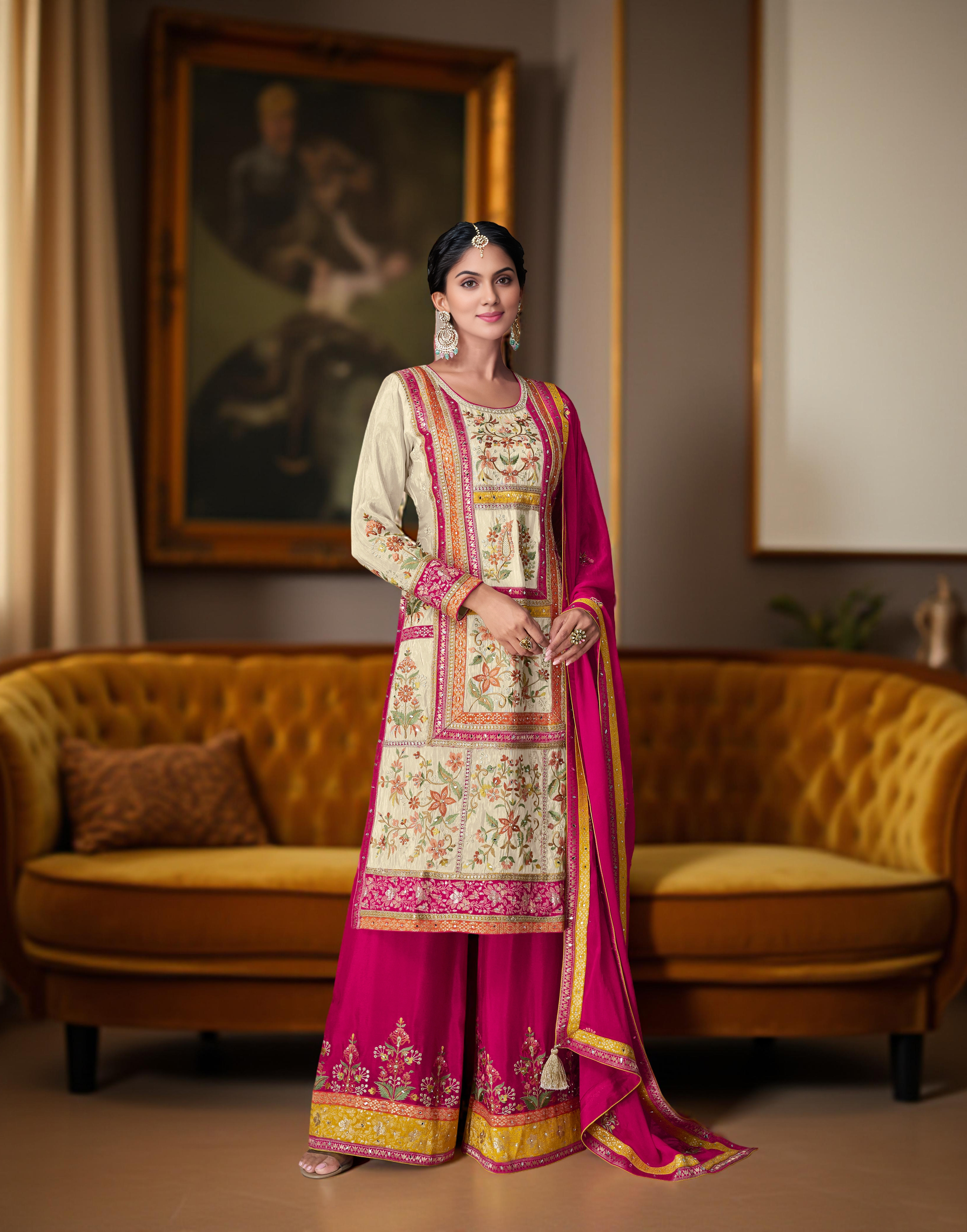 Attractive These Designer Plazzo Suit in Fine Colored Pair With Bottom And Dupatta.These Top Are Chinon And Bottom Are Fabricated On Chinon Pair With Chinon Dupatta.Its Beautified With Heavy Designer Embroidery Work.