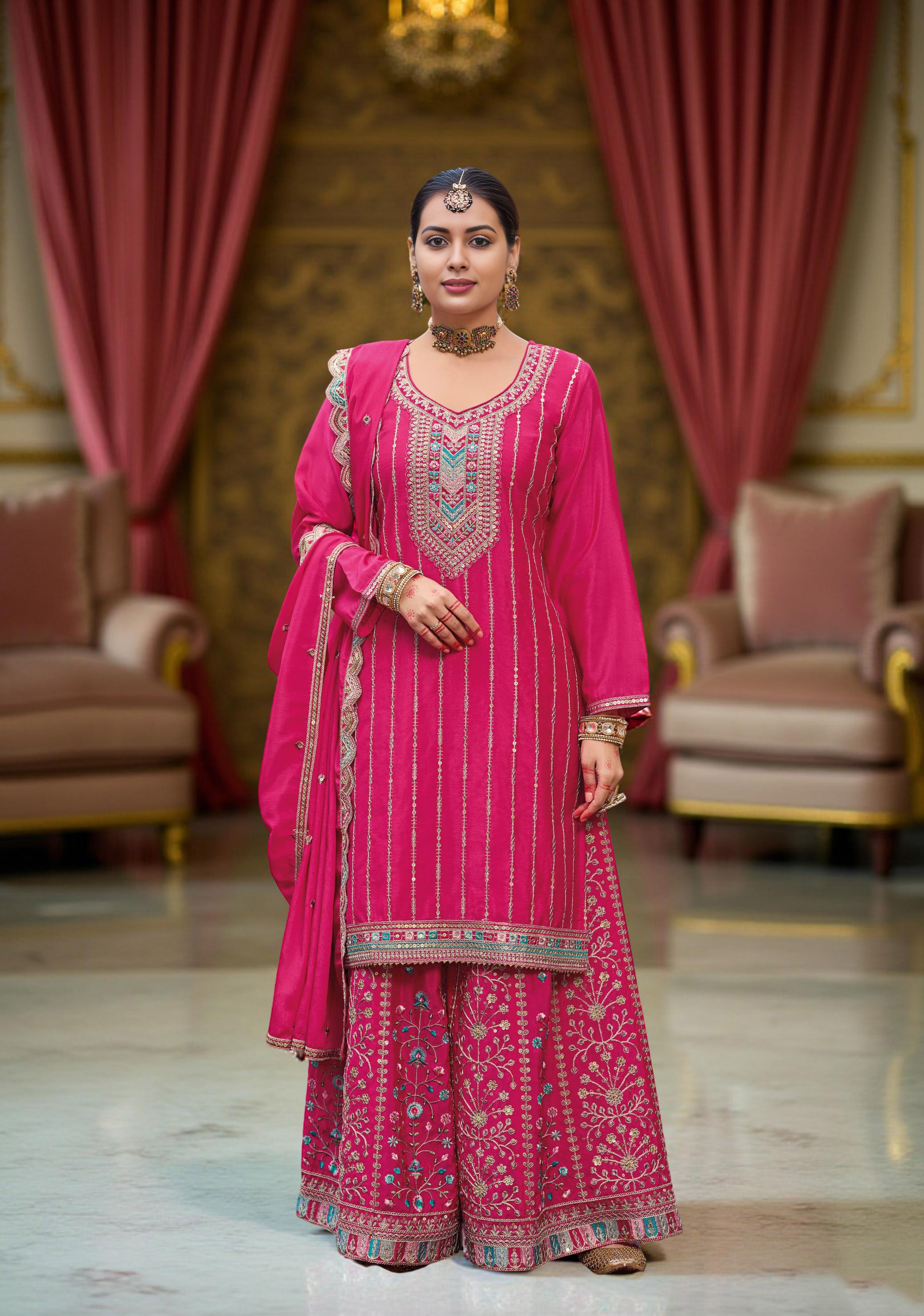 Pink Color Chinon Fabric Designer Embroidery Work Graceful Palazzo Dress