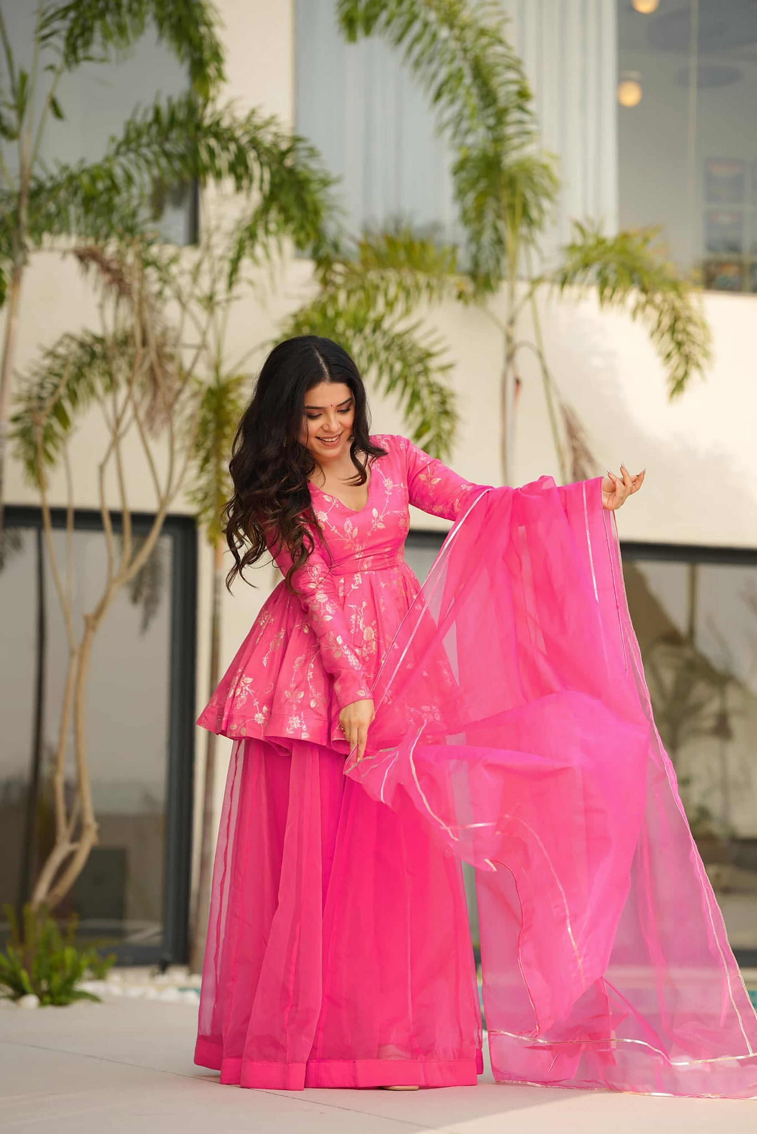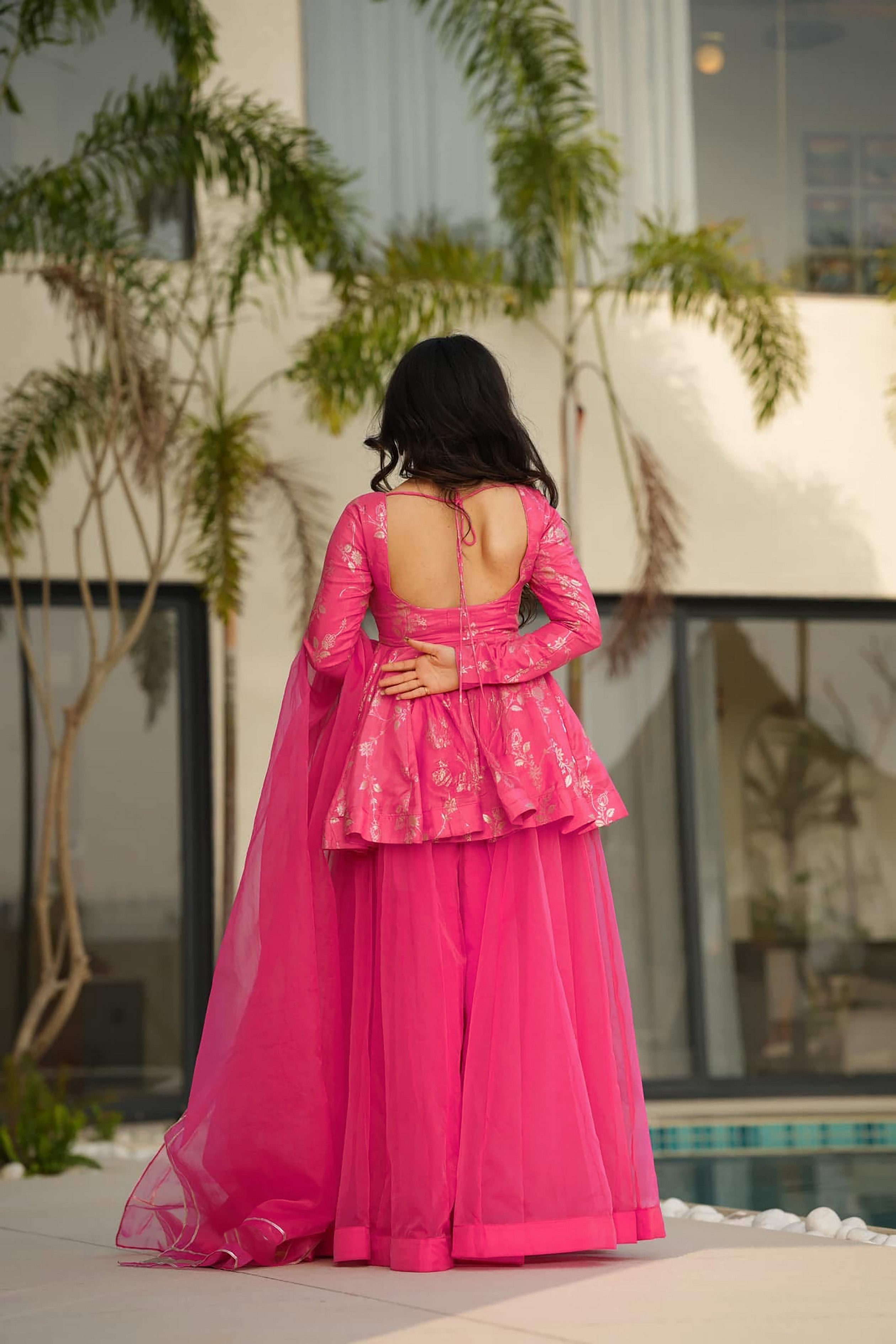 Pink Color Ethnic Readymade Sharara Dress For Partywear Looks