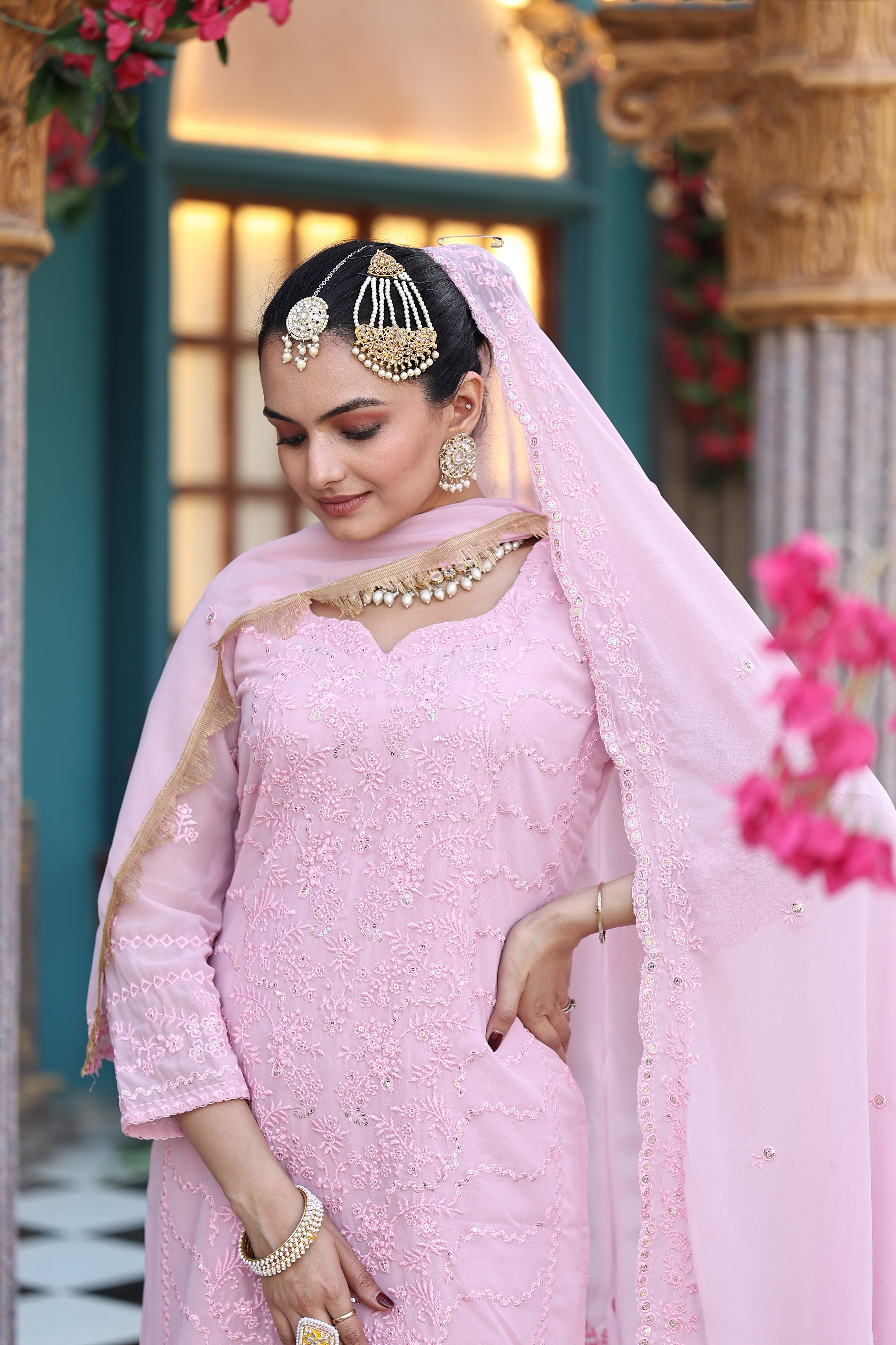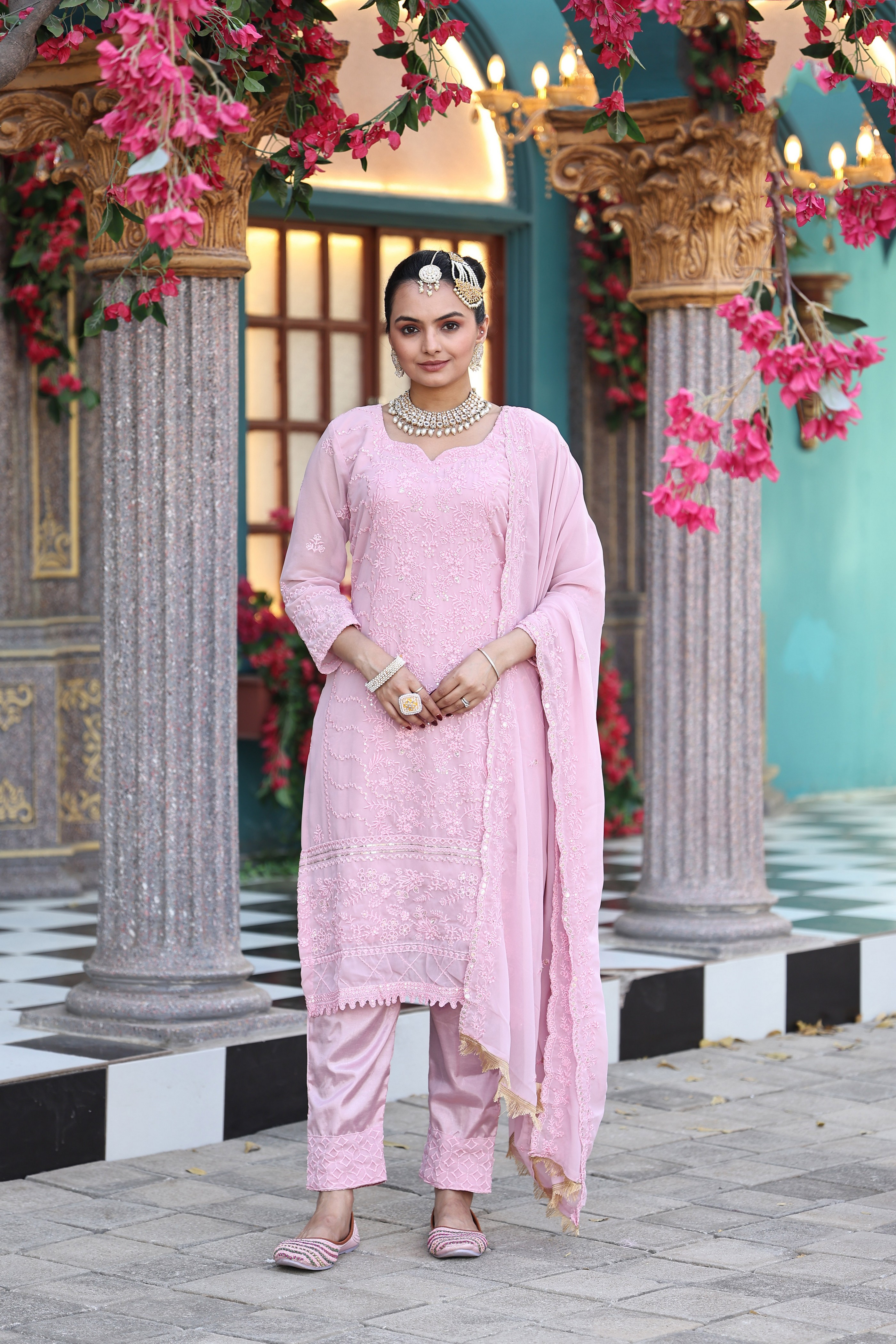 Pink Color Georgette Fabric Beautiful Embroidered Free Size Stitched Suit XL(42)