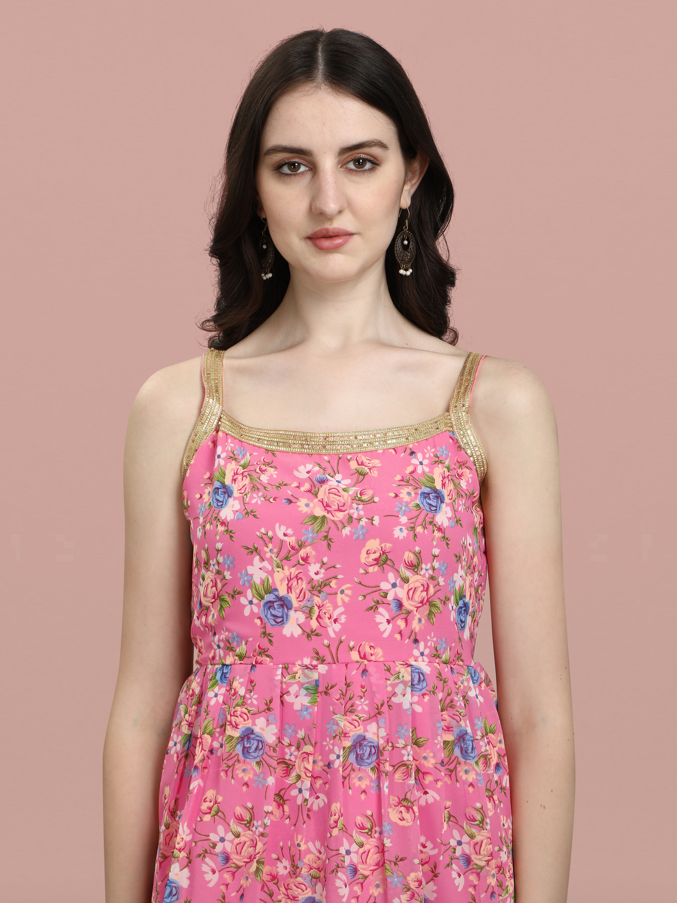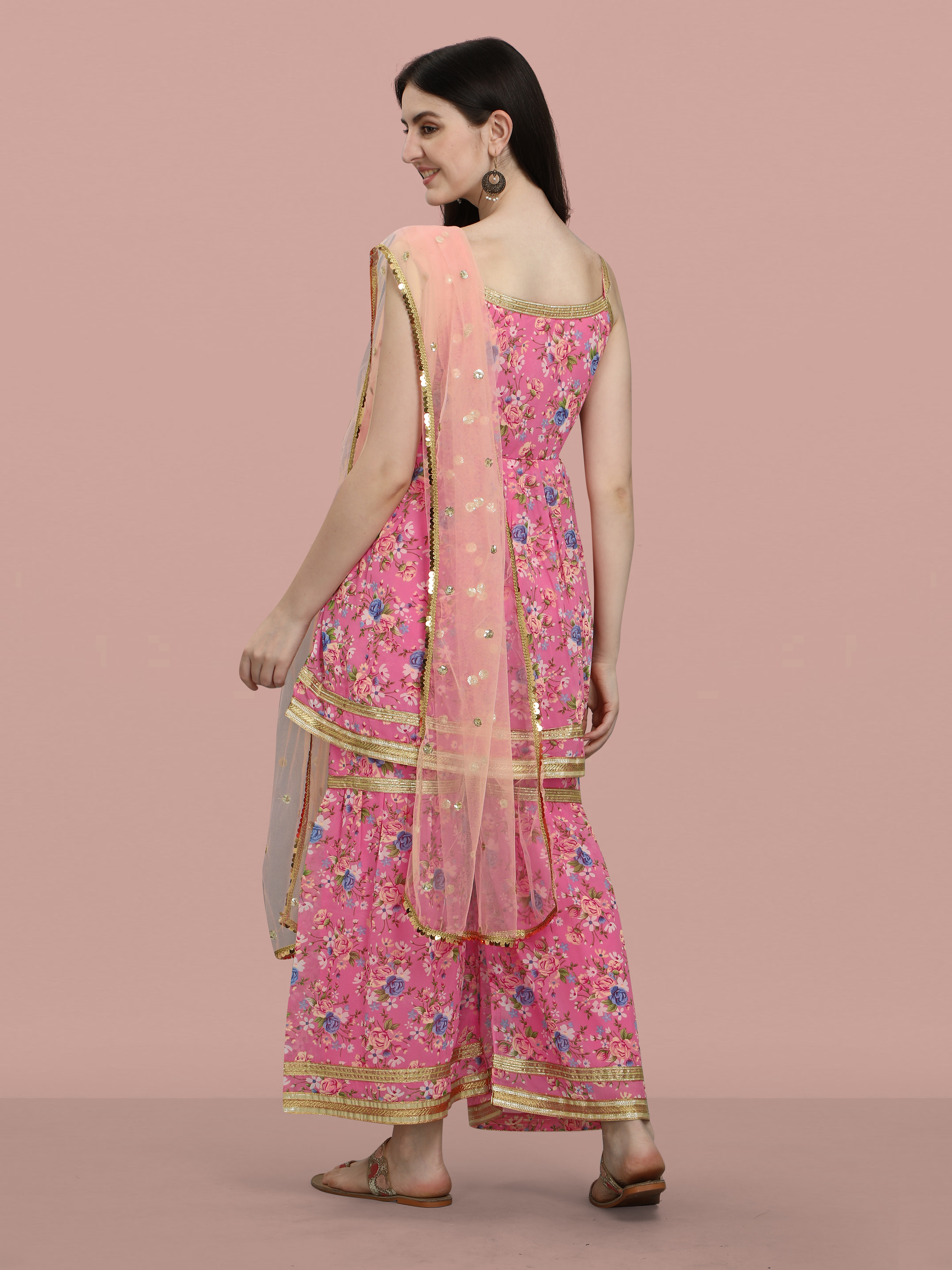 Pink Color Georgette Fabric Ethnic Ceremonial Sophisticated Girlie Kurta Set