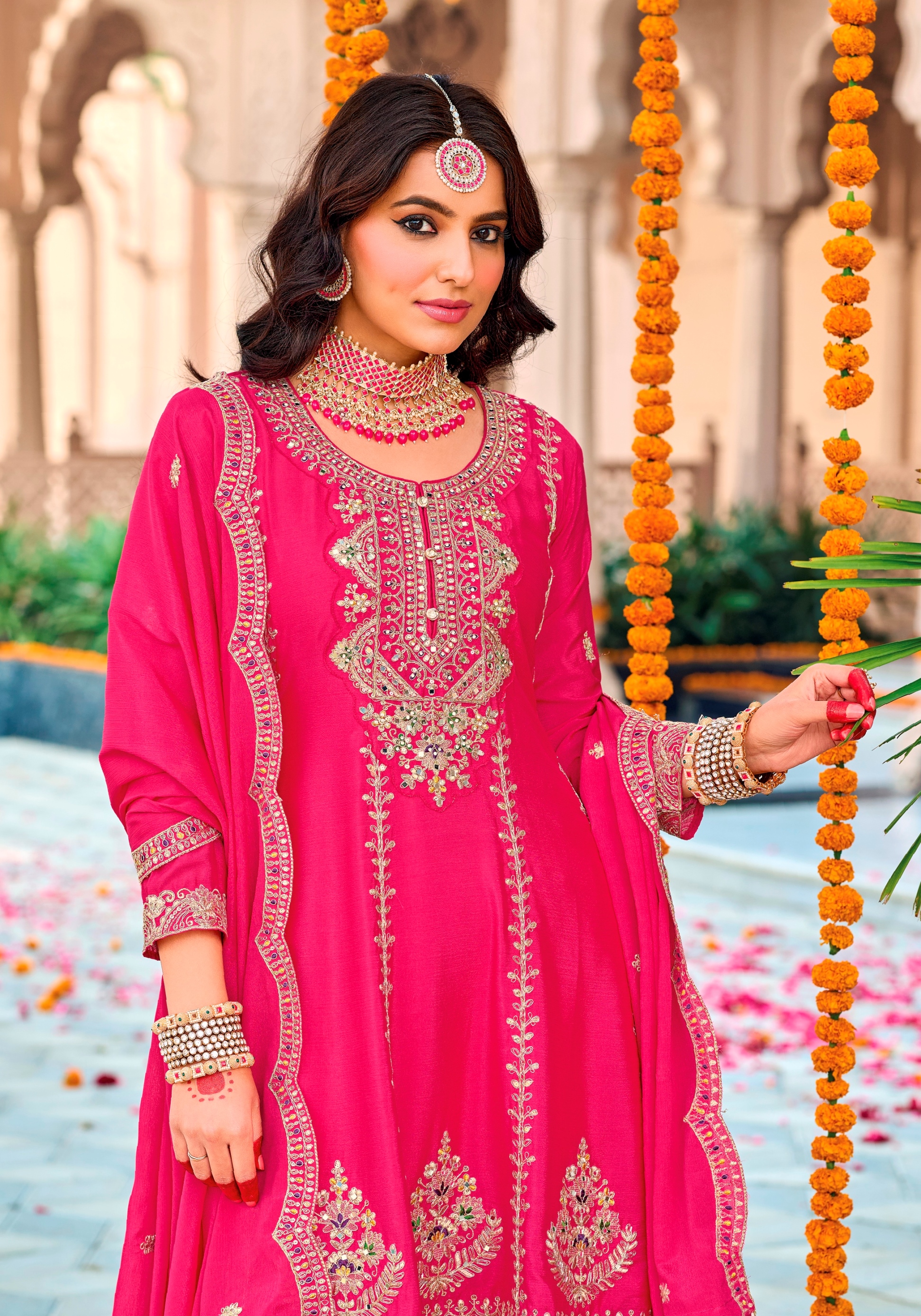 Pink Color Heavy Embroidered Chinon Fabric Designer Salwar Kameez