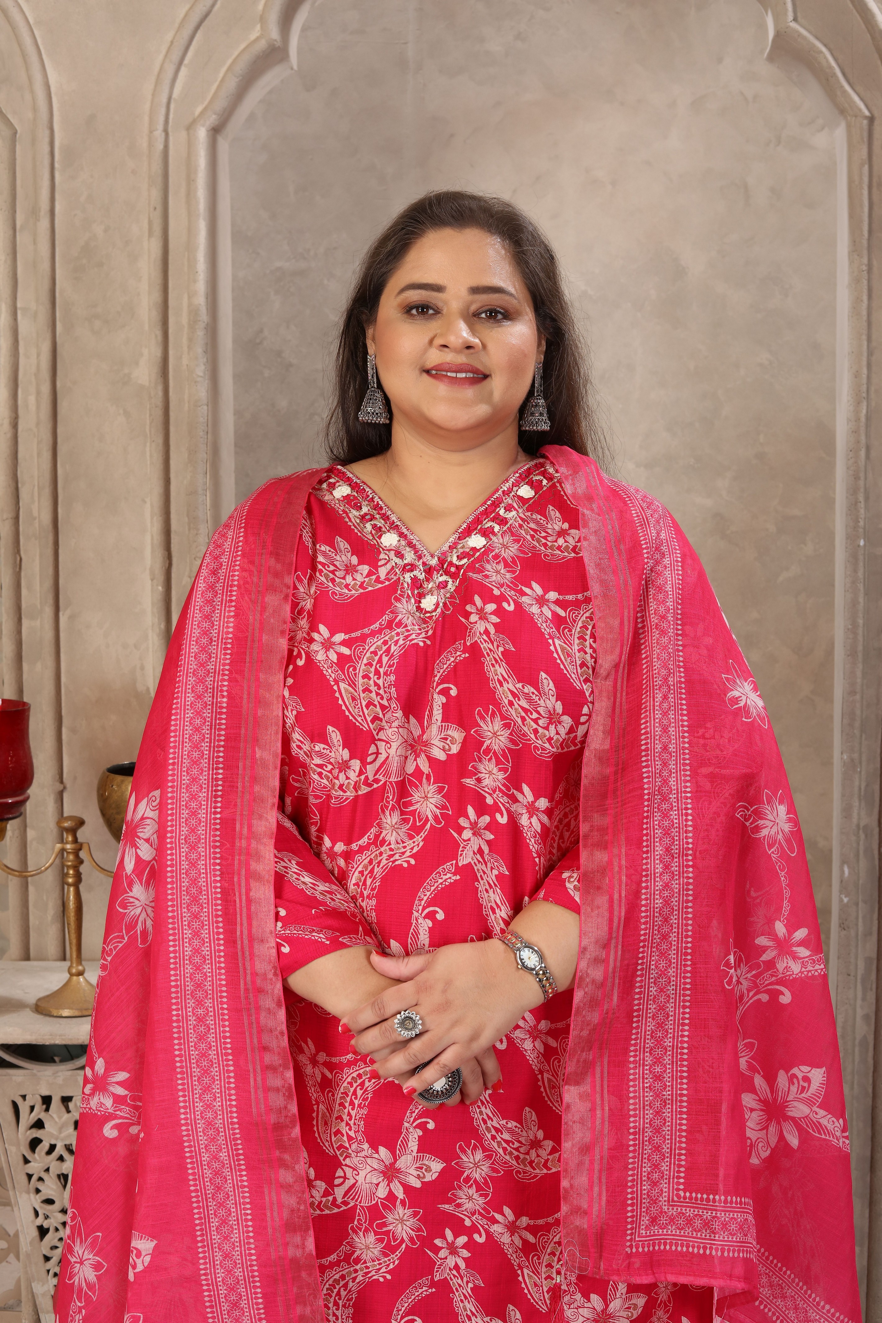 Pink Color Lichi Viscose Fabric Prited Plus Size Kurta Set With Dupatta
