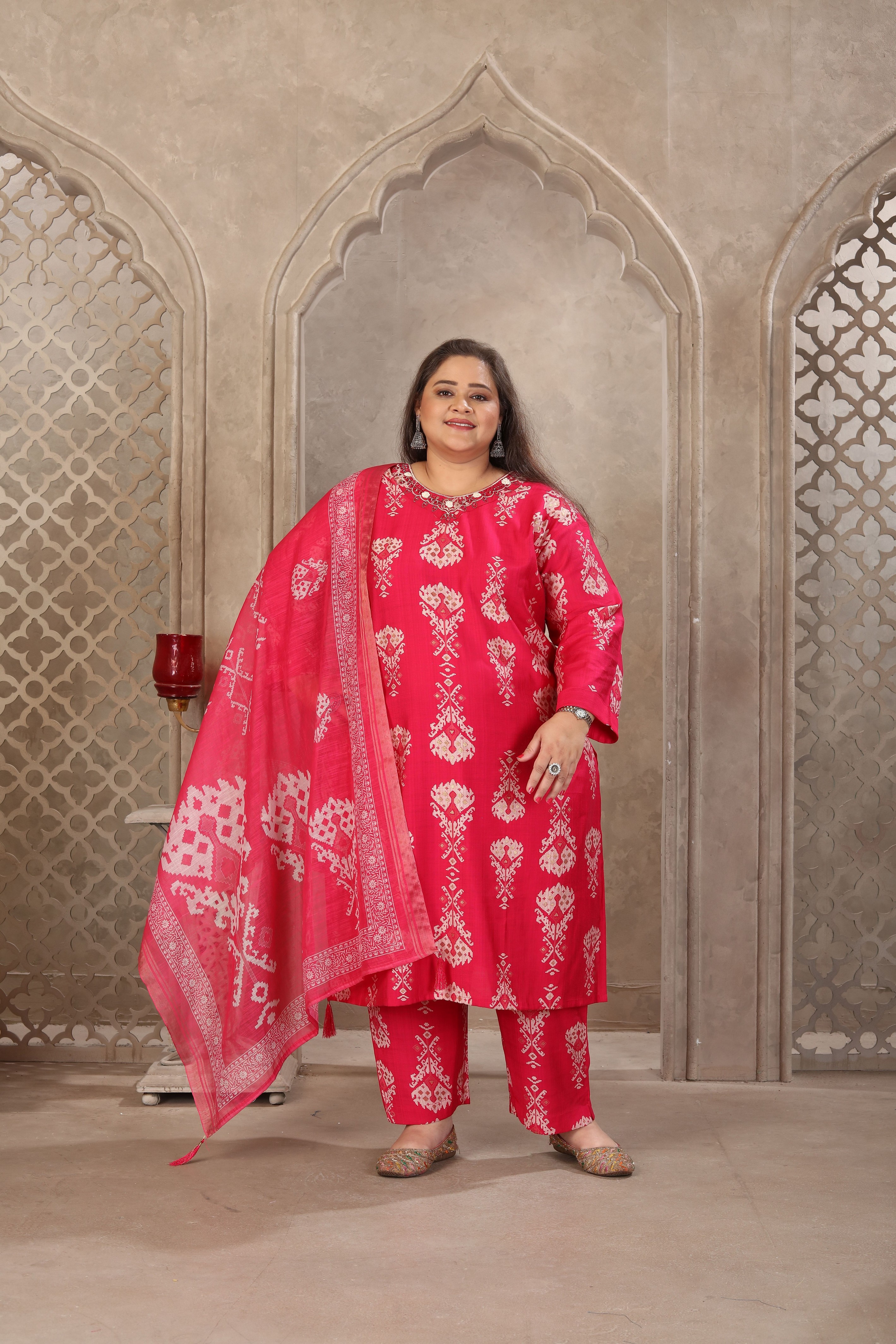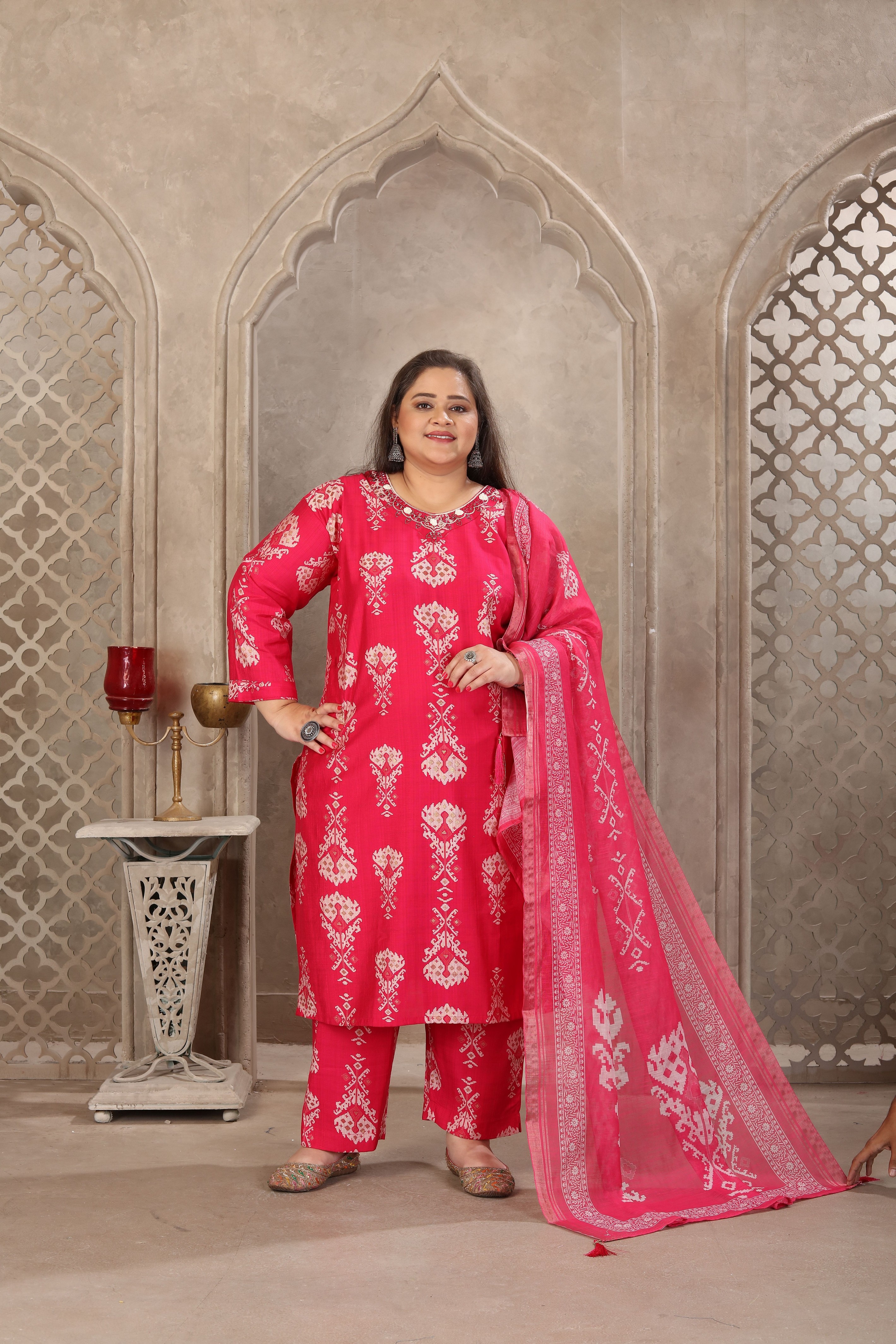 Pink Color Lichi Viscose Fabric Prited Plus Size Kurta Set With Dupatta