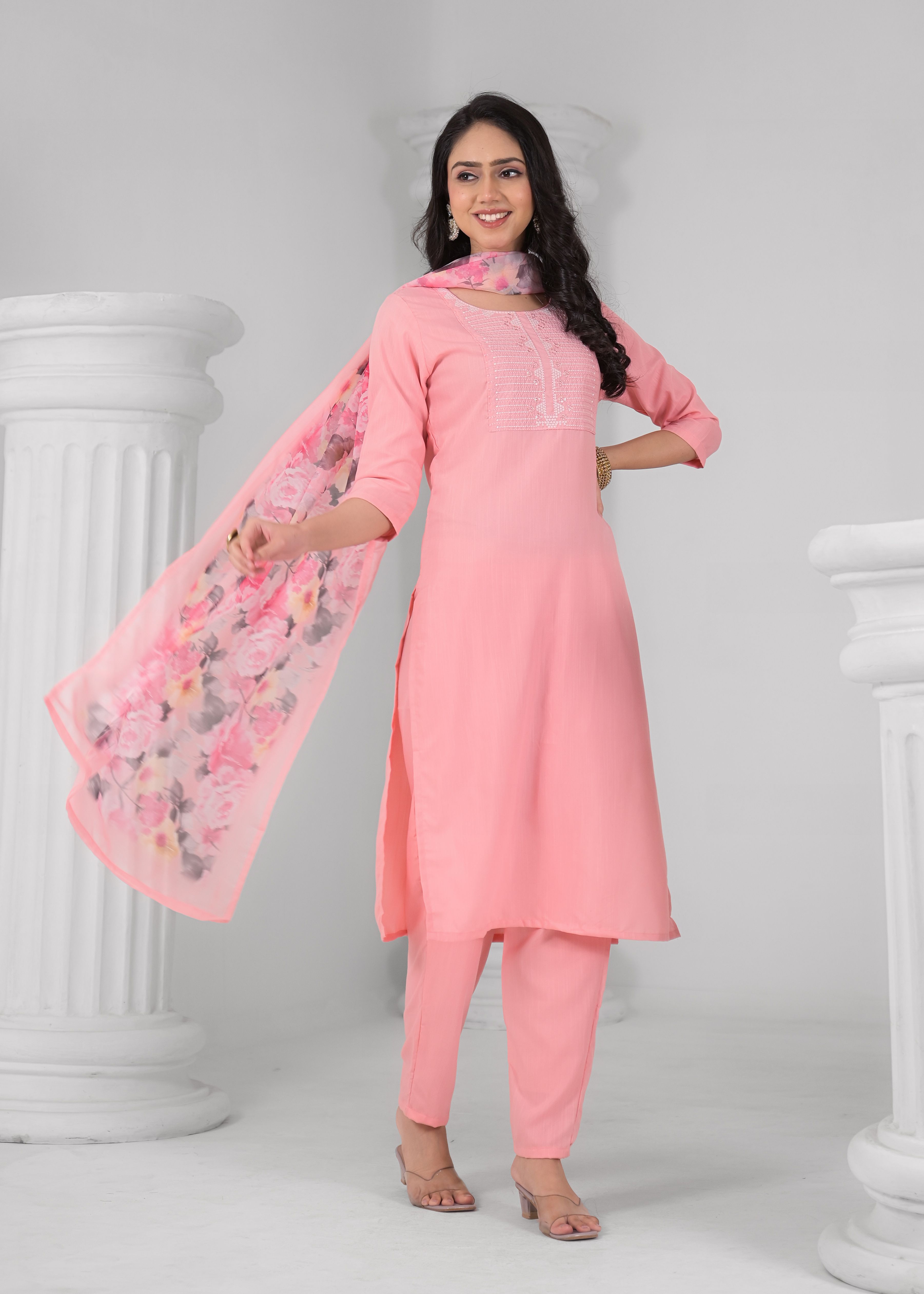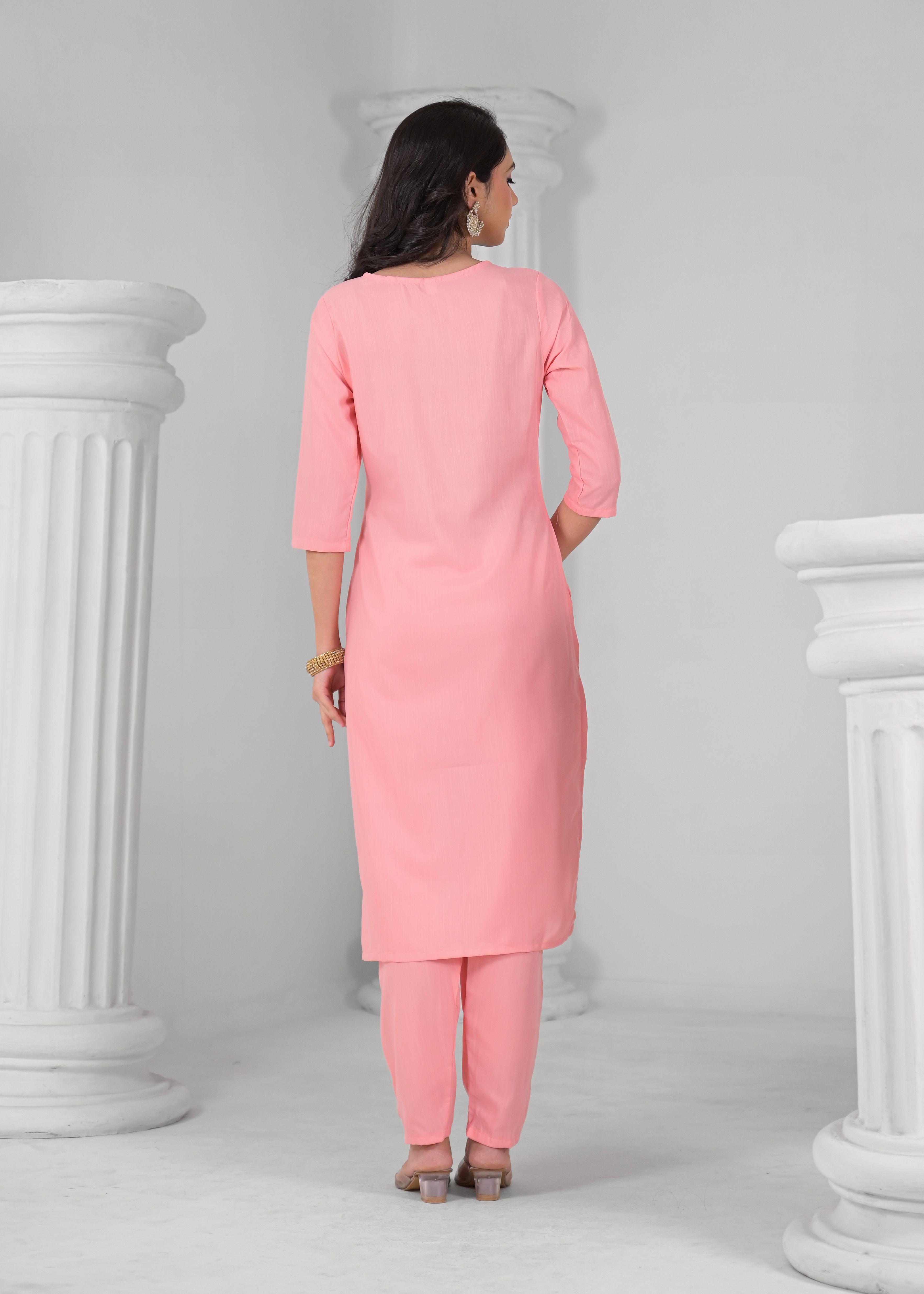 Pink Color Rayon Fabric Beautiful Fancy And Ethnic Kurta Set With Dupatta