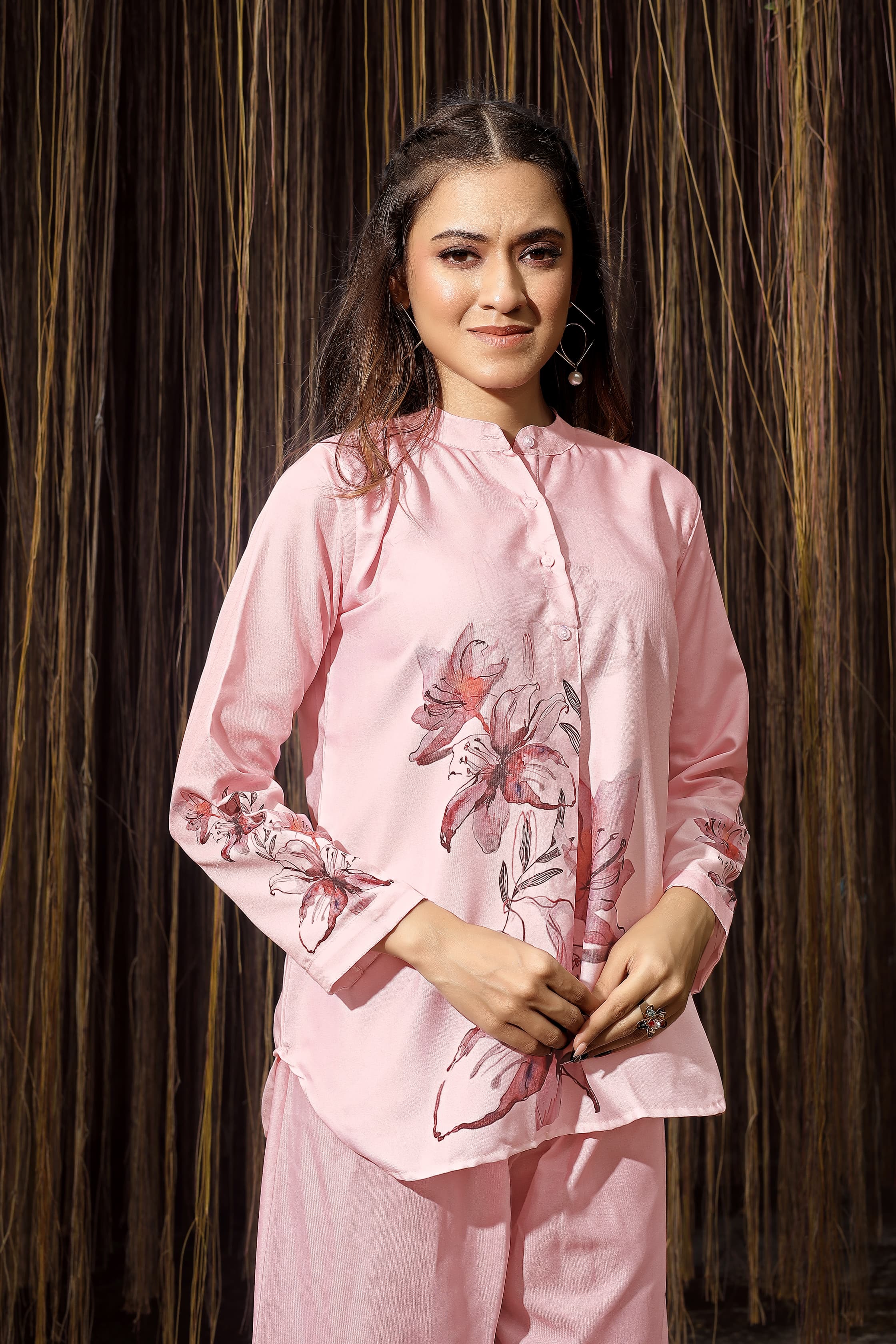 Pink Color Rayon Fabric Designer Digital Printed Readymade Co ord Set