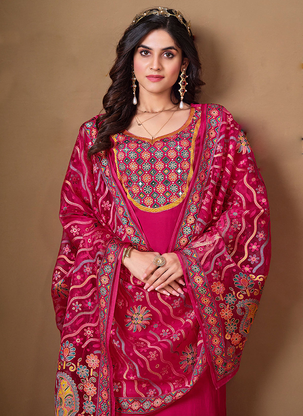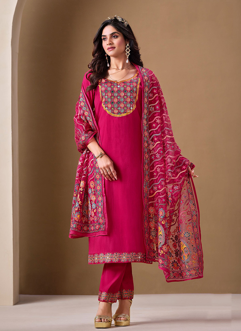 Attractive These Beautiful Looking Readymade Suits.These Top Are Roman Silk And Bottom Are Roman Silk And Dupatta Are Organza Fabricated.Its Beautified With Designer Brasso Patch,Mirror Embroidery,Diamond Work.
