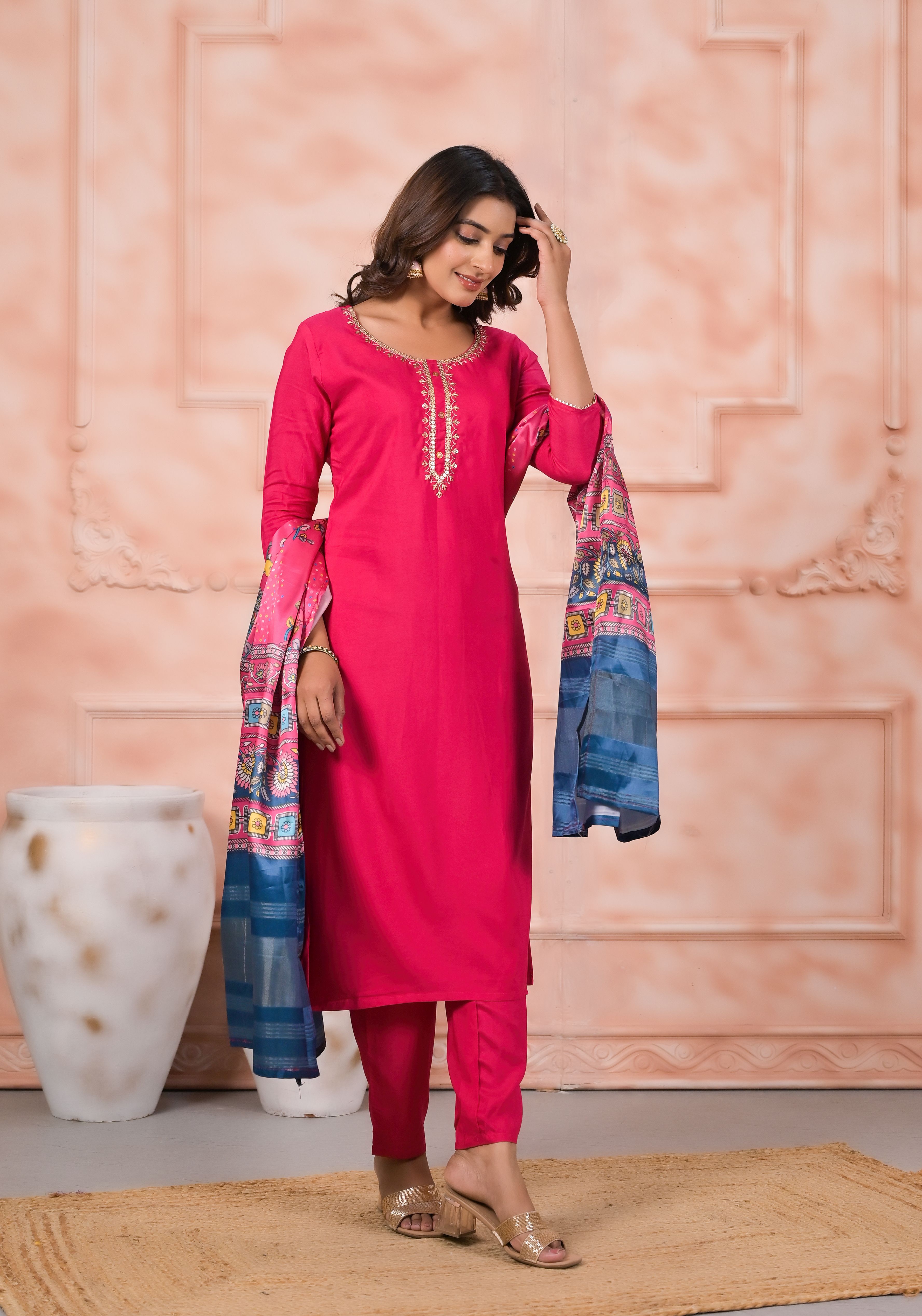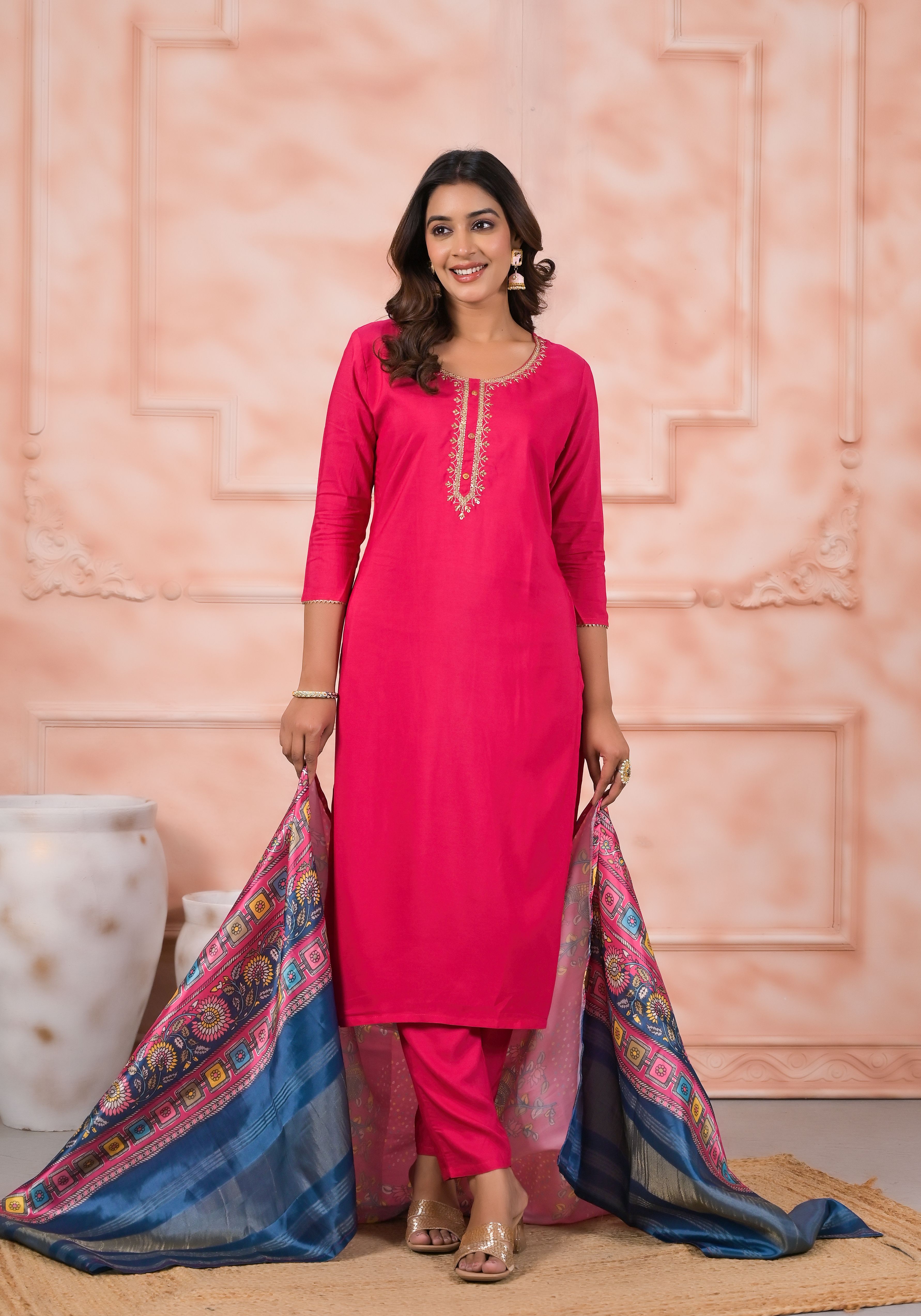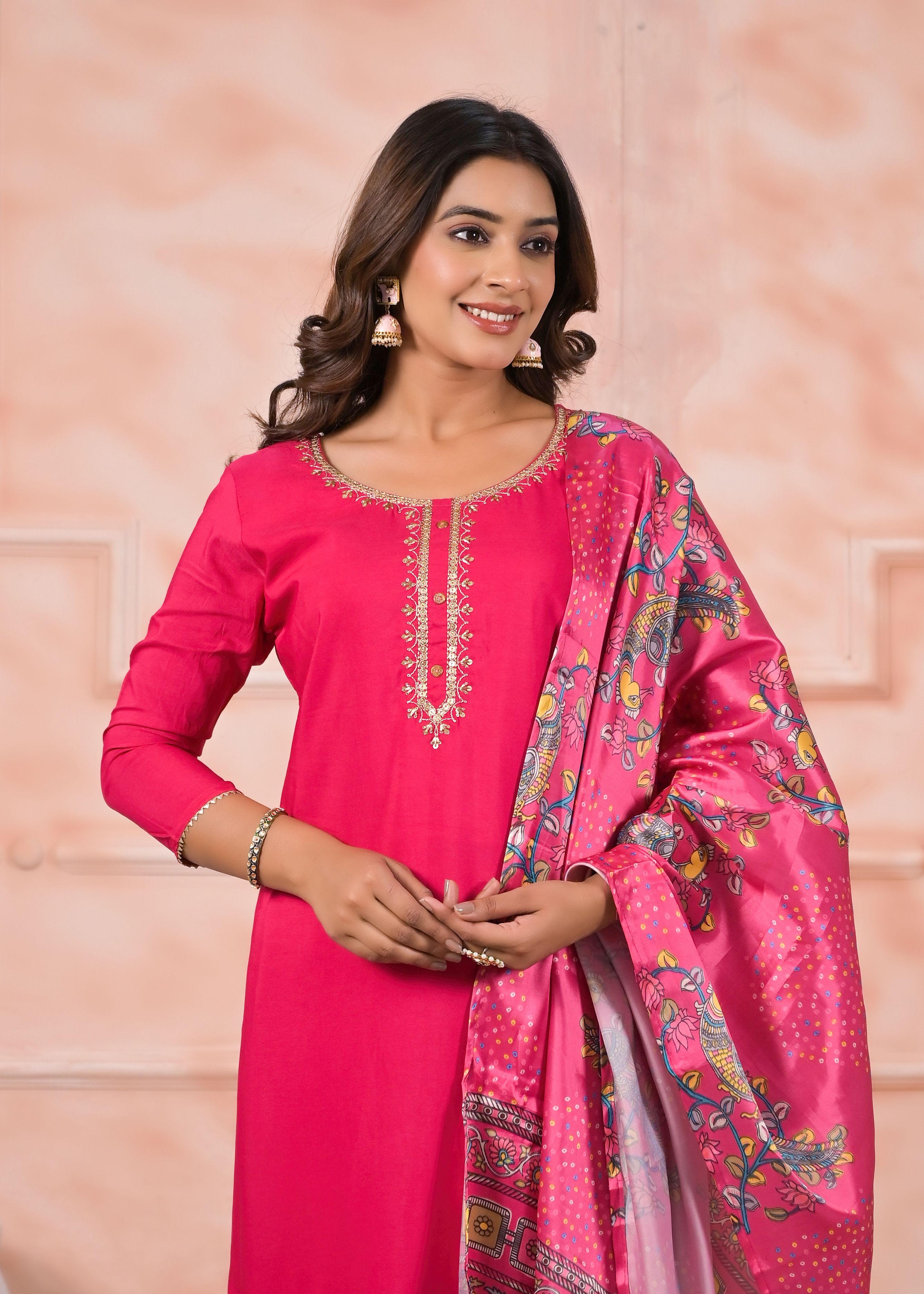 Pink Color Viscose Fabric Designer Embroidery Work Ceremonial Kurta Set With Dupatta
