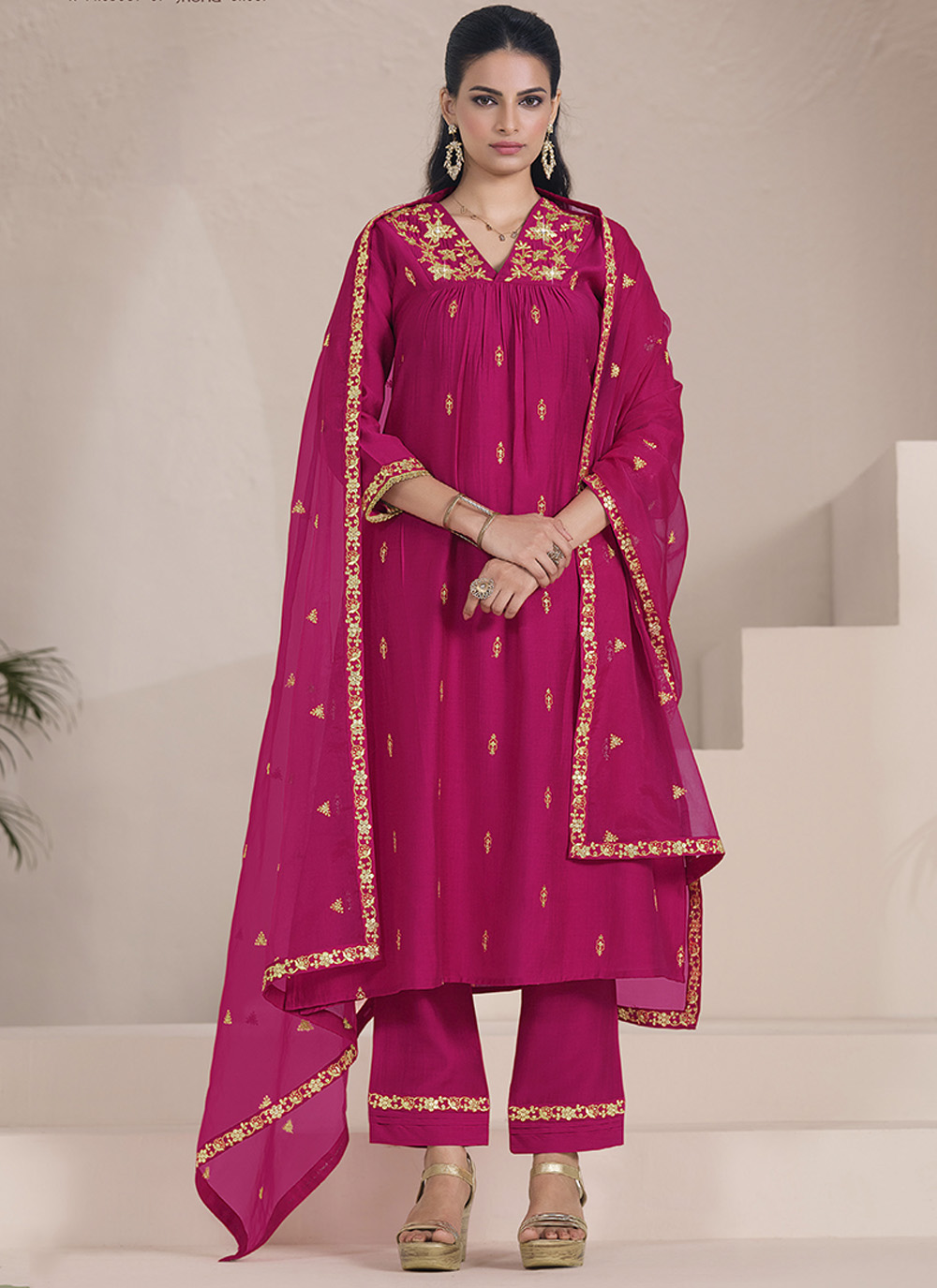 Pink Color Viscose Fabric Resham Embroidered Readymade Salwar Suit