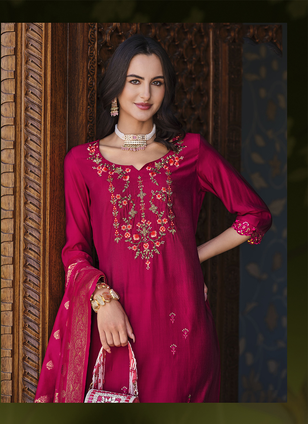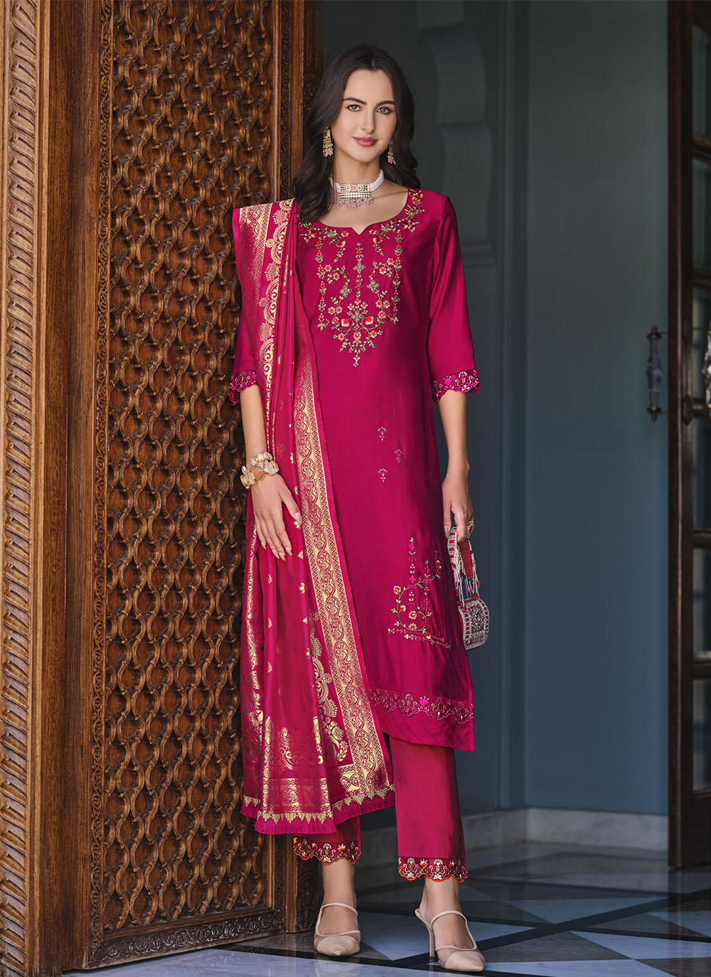 Pink Color Viscose Fabric Woven Designer Readymade Suit With Hand Work