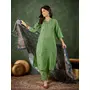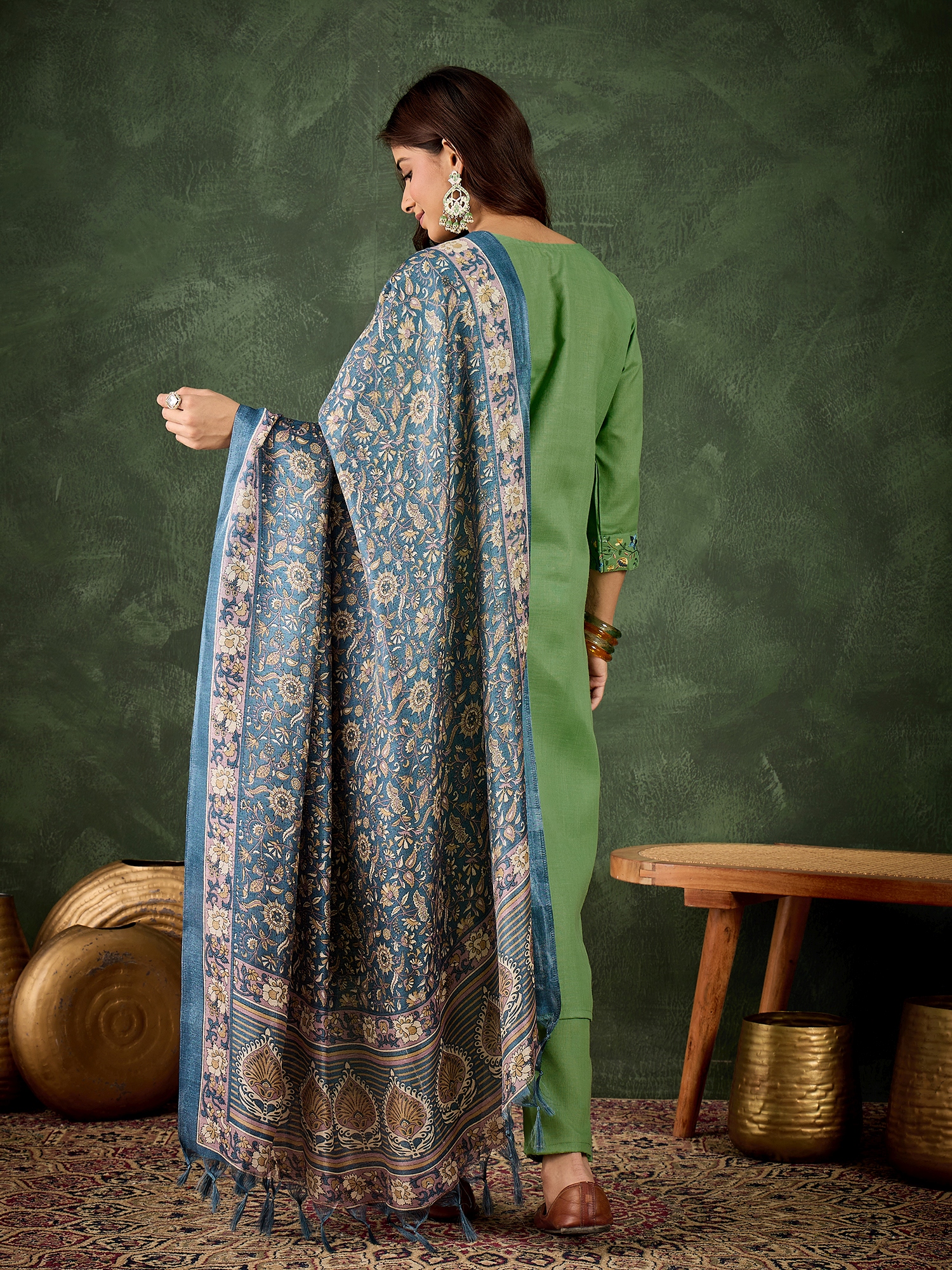 Pista Color Beautiful Cotton Blend Readymade Kurta Set With Designer Embroidery Work