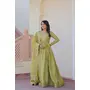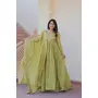 Pista Color Gold Crush Fabric Designer Embroidery Wedding Wear Gown With Dupatta