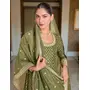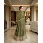 Pista Color Heavy Glamorous Ceremonial Wear Anarkali Viscose Shimmer Dress
