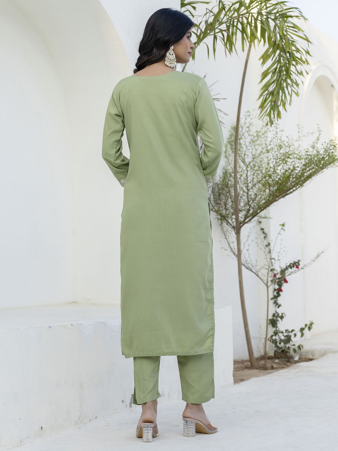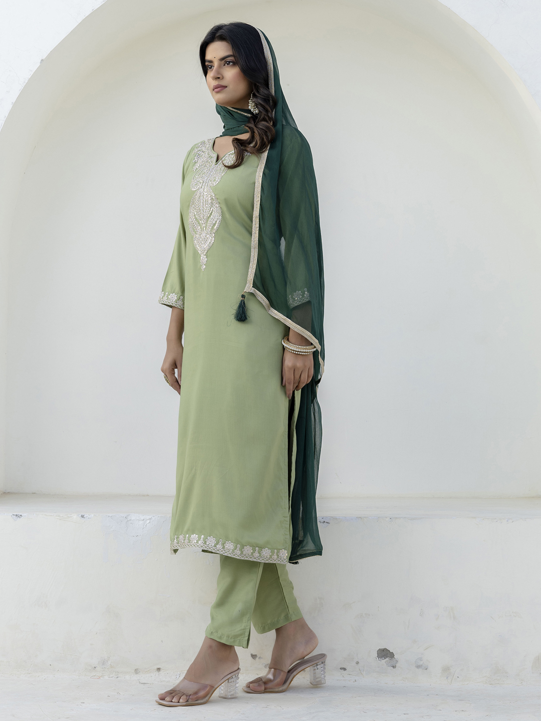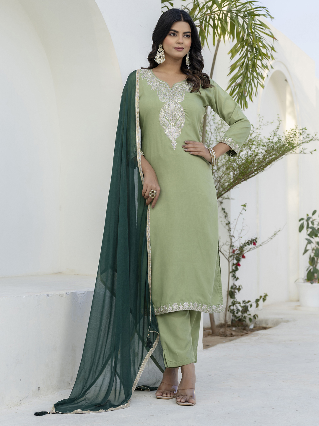 Pista Color Silk Blend Fabric Beautiful Festive Wear Readymade Kurta Set