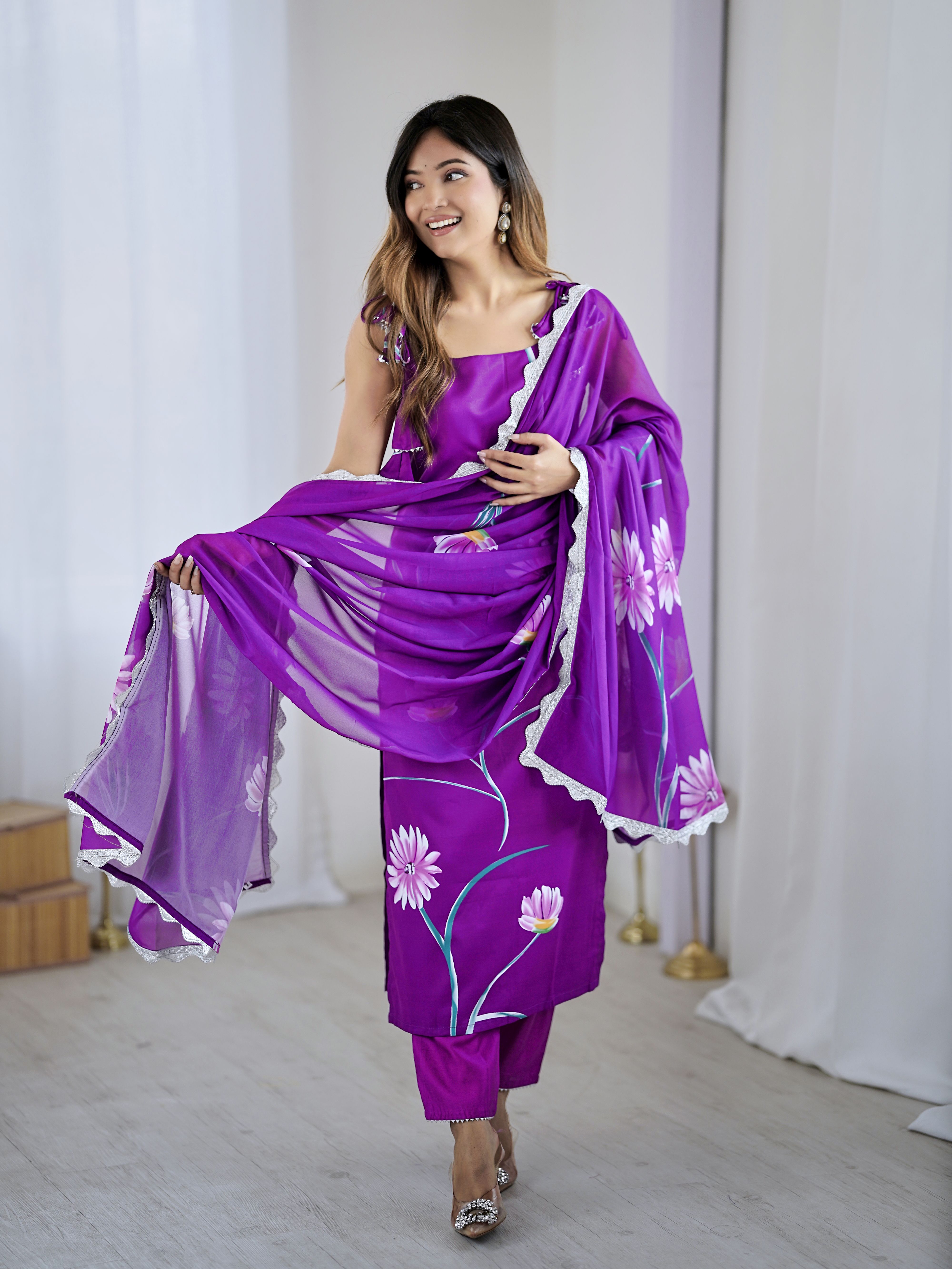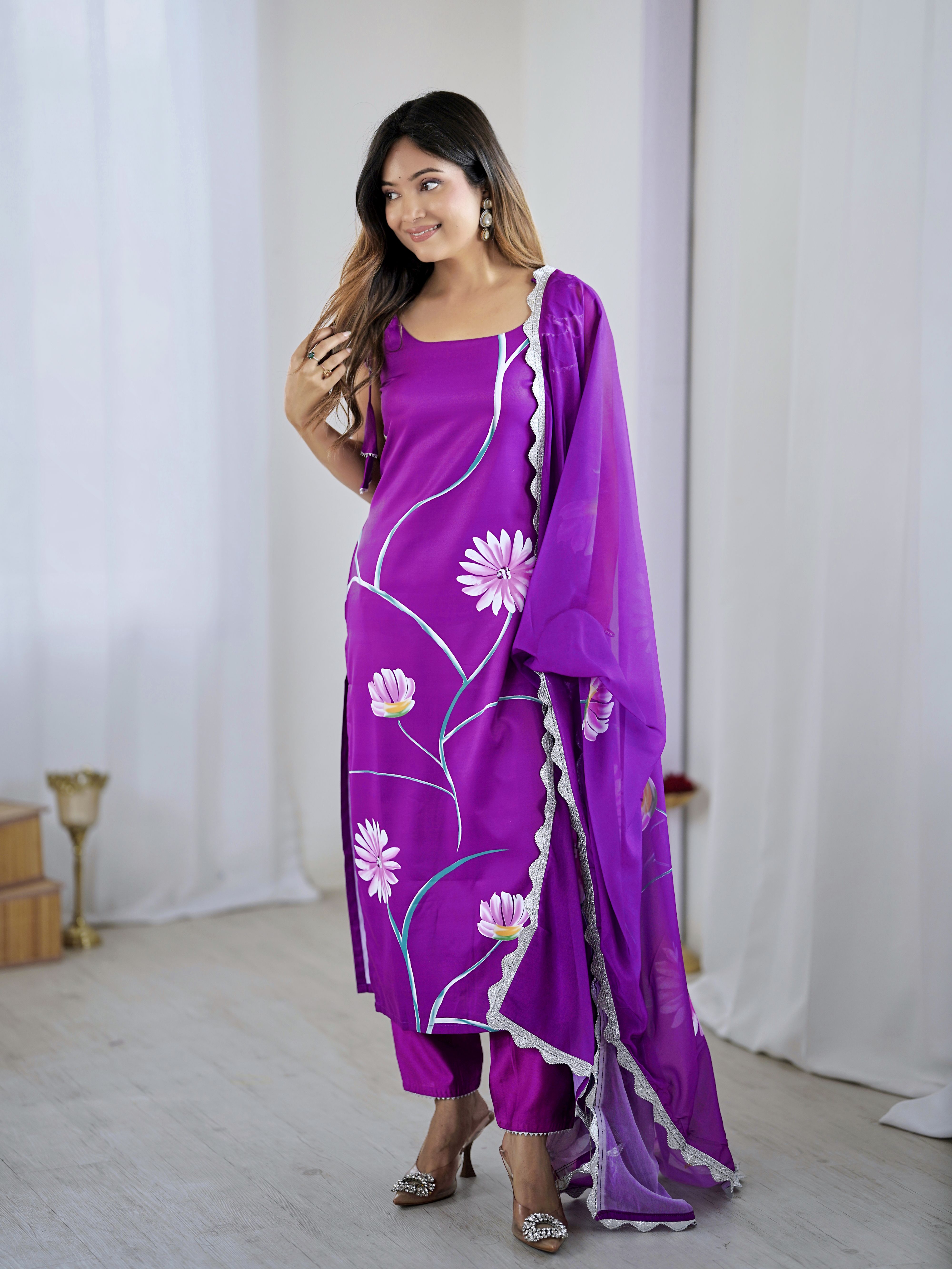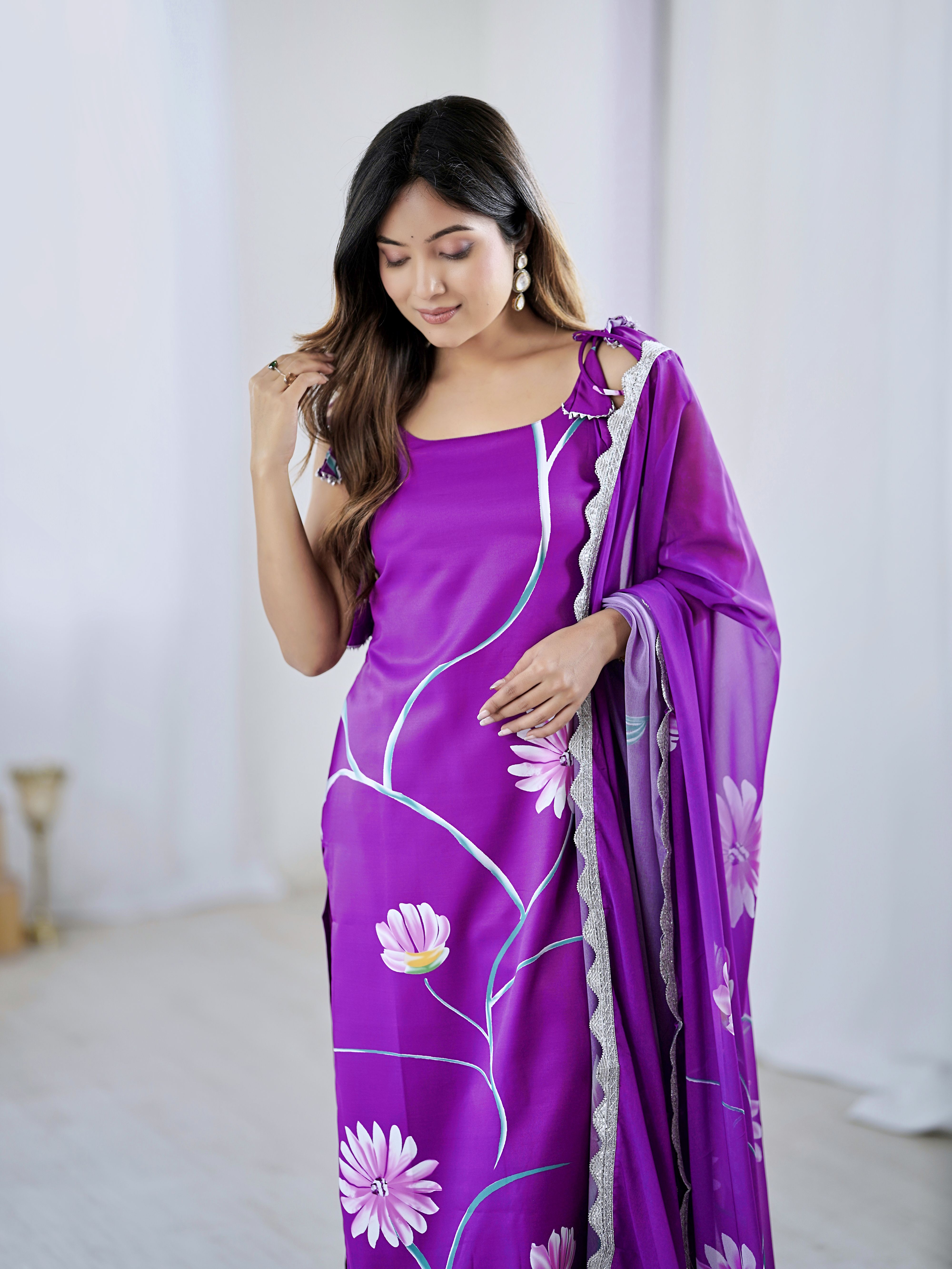 Purple Color Beautiful And Formal Wear Kurta Set for Trendy Girls