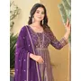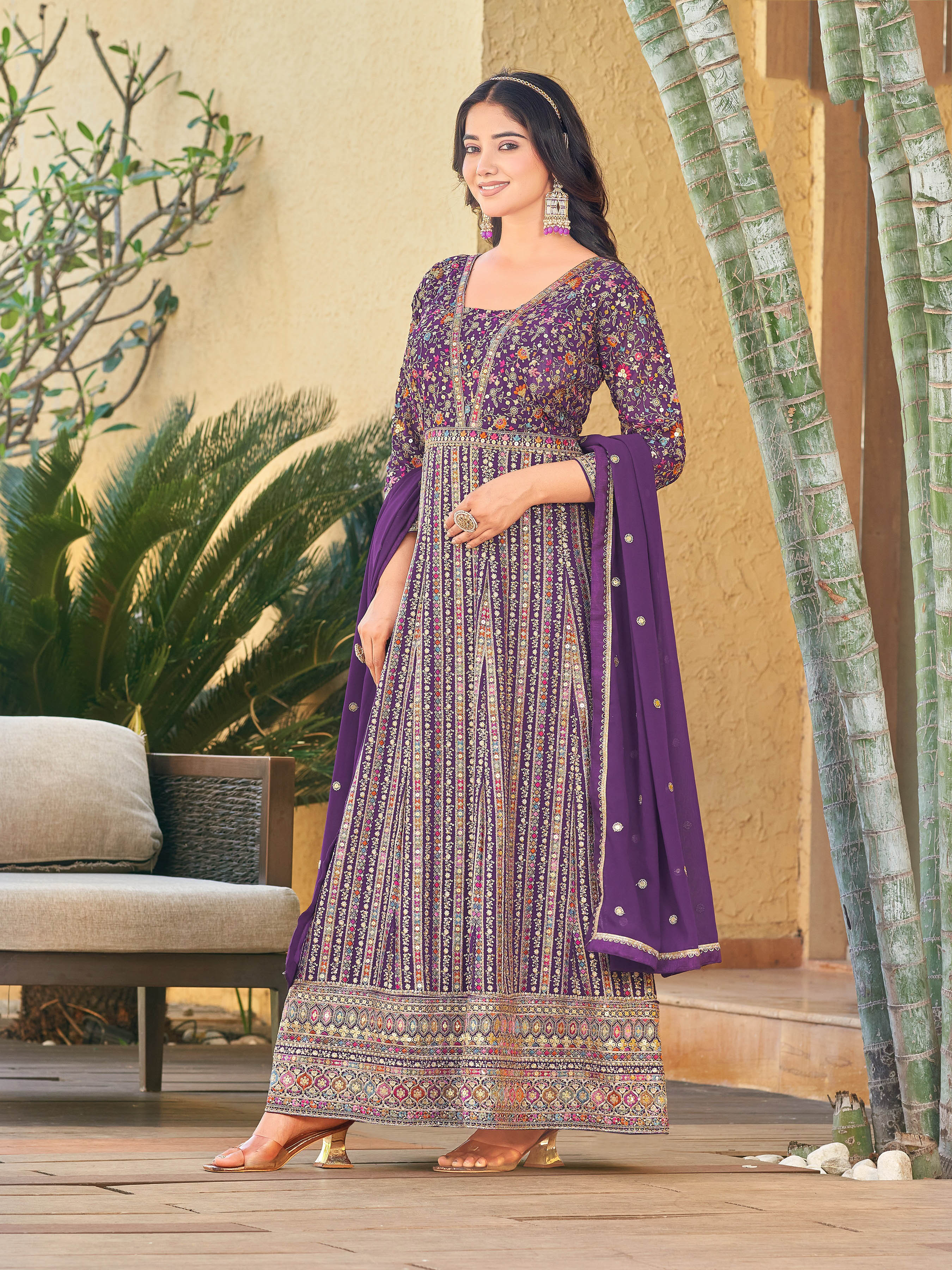 Purple Color Beautiful Embroidered Georgette Fabric Free Size Stitched Anarkali Dress XL(42)